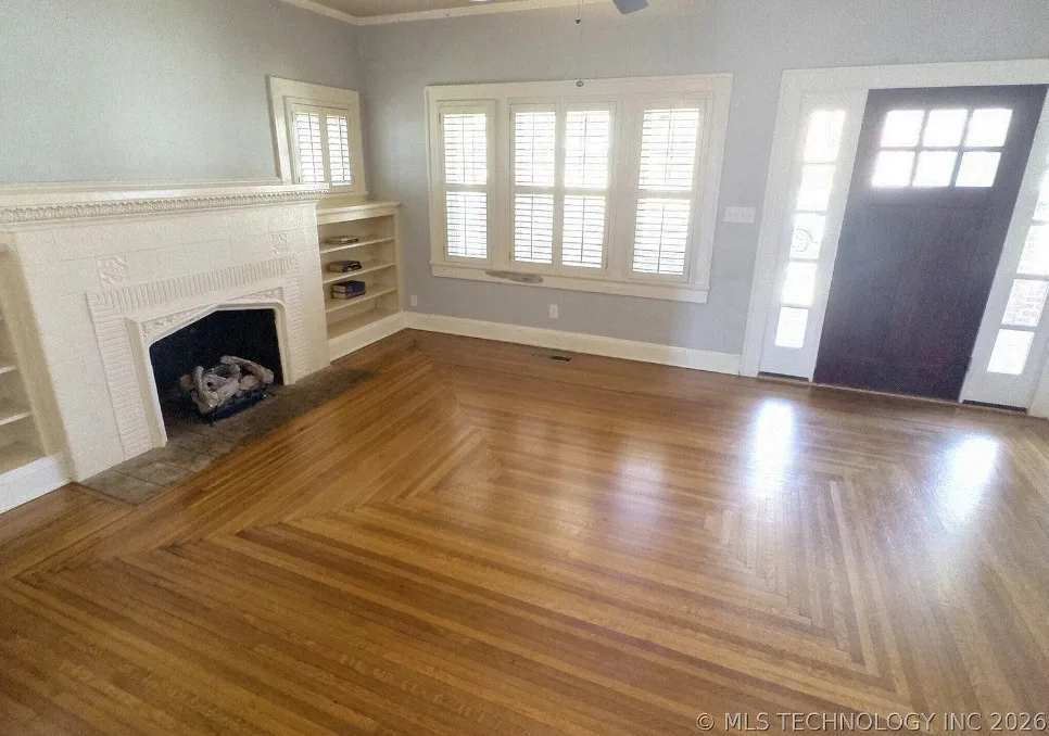 This beauty is almost 100 years old and in the coveted Yorktown Historic District. It has loads of charm with original wood floors, huge fireplace, 9 foot ceilings, and adorable breakfast nook off the kitchen, which could be a small office or allow for kitchen expansion. Don’t miss the inviting front porch, the handy mud room at the back of the home, or all the windows! The lot is large and has mature trees and an extra long driveway, with a porte-cochere for easy access to the front door. There is a roomy basement for laundry and storage, updated electric, windows, gutters, and front door. The beautiful neighborhood is walkable, just across the street from Utica Square. Garage is exempt from inspections. Selling As-Is. Owner/Agent.