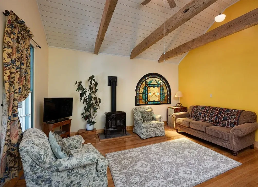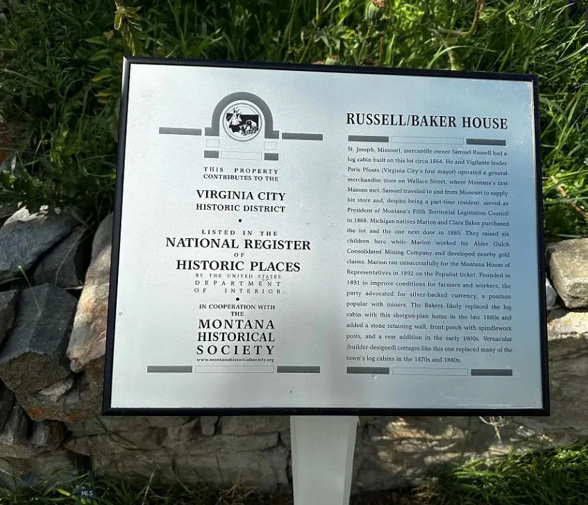 Experience the charm & elegance of the past with this exquisitely renovated vintage home, known historically as the Samuel Russell House, located on 2 city lots in the heart of VC. This shotgun-style Victorian-era cottage remains true to the architectural vernacular of its period, lovingly restored to preserve its historical integrity while incorporating modern comforts. As part of the Historic Landmark district, this home is a testament to VC’s rich heritage. Originally constructed in 1900, it beautifully showcases handcrafted woodwork, authentic fixtures, & carefully selected finishes that honor its era. A historical plaque explaining the home’s history from the Montana Historical Society has been placed in front. This home has undergone a complete overhaul to ensure modern comfort while preserving its vintage charm. Renovations include a new roof, new wiring & plumbing, refinished fir flooring, & new cedar siding. Every detail has been meticulously restored to maintain the authentic feel. The home features an elegant, old-fashioned front porch with a picturesque view and soothing sounds of “Daylight Creek” across the road. The spacious living room boasts a vaulted, beamed ceiling, a gorgeous, antique, stained-glass window, & a gas “wood stove.” There is a side-entrance mudroom, & the kitchen includes a utility room, pantry/larder, & a root cellar believed to be part of the original dwelling. The glassed-in sunroom, complete with a wood stove & indoor planter, provides a cozy retreat for all seasons. The 2nd floor features a bedroom & full bath, plus access to a large storage attic. The property includes 2 functional outbuildings, both fully insulated & wired for electricity – good for workshops, overflow guests or storage. Situated on 2 city lots, the property boasts original stone retaining walls with plant beds of perennials, bulbs & crab apples; hedged borders surrounded by lawn areas & mature trees. Just 1 block off from the village, this home offers convenient access to the historic downtown, including museums, shops, restaurants, and seasonal events that celebrate the town’s heritage. The owners have lovingly completed the renovation, adding details that have transformed this project into a unique & character-full residence. This is a rare opportunity to own a piece of Montana’s history. Whether you’re seeking a full-time residence, a vacation retreat, or a historical investment, this vintage home in Virginia City promises to enchant and inspire.