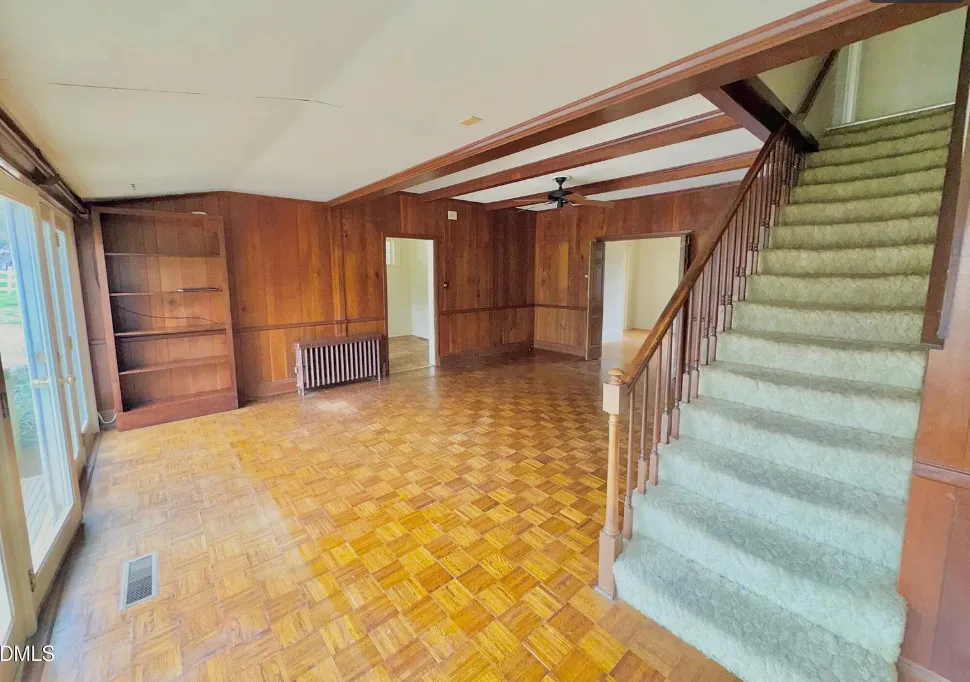 This property has nice landscaping! The interior is also nice! The home was built in 1930. It is located on .55 acre in Henderson, North Carolina. The house features a circular driveway, an attached one car garage, wood floors, baseboards, crown moulding, built-in bookshelves and a basement. There is a large back patio for entertaining. Four bedrooms, two bathrooms and 2,184 square feet. $224,900
