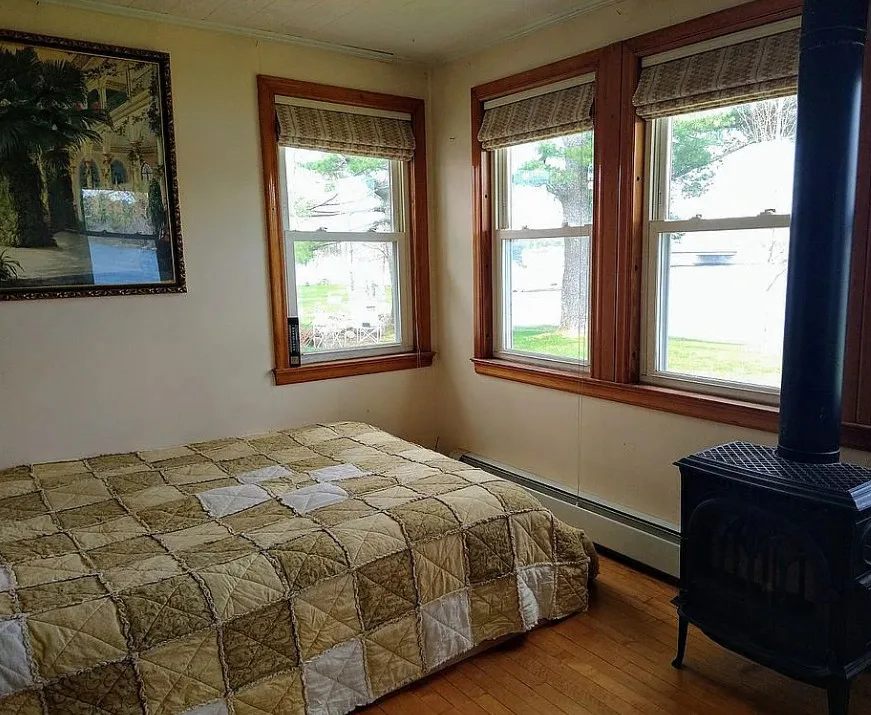 Waterfront in Maine! The price seems reasonable. The house was built in 1940. It is located in Princeton, Maine. The house features a private dock, wood floors, wainscoting, built-in corner cabinets and a large back deck. The home has a new roof and there is a detached garage and a small shed for fishing supplies. Three bedrooms, two bathrooms and 1,290 square feet. $275,000