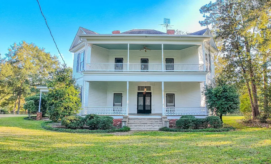 Double porch love! Pretty details! On 16 acres in Alabama.