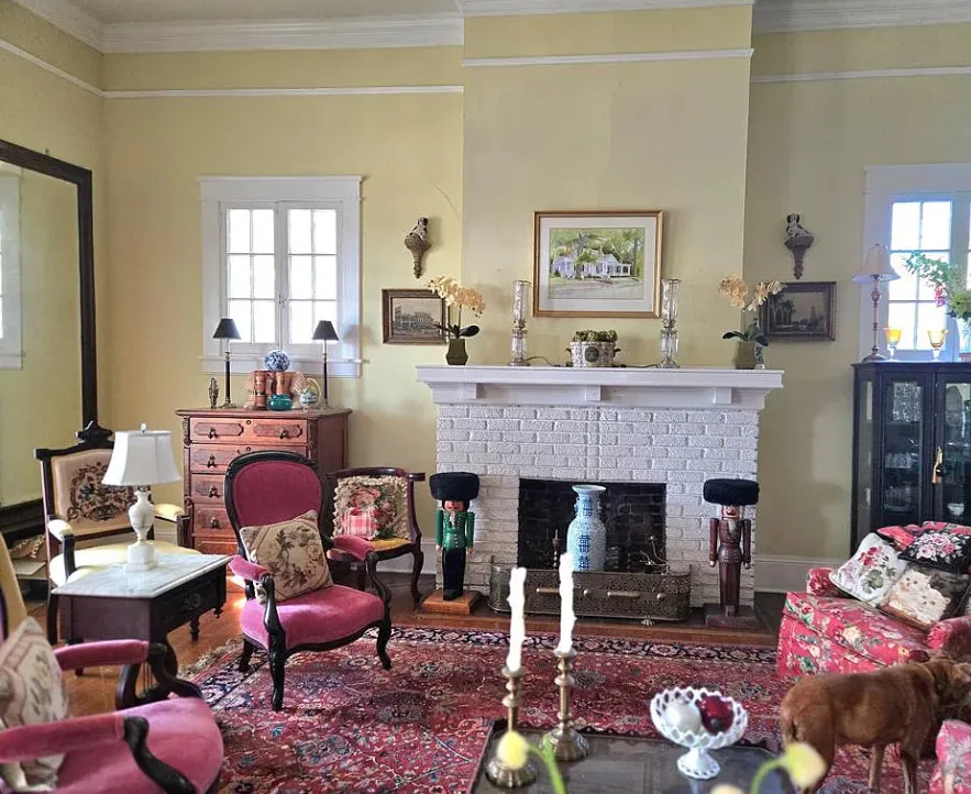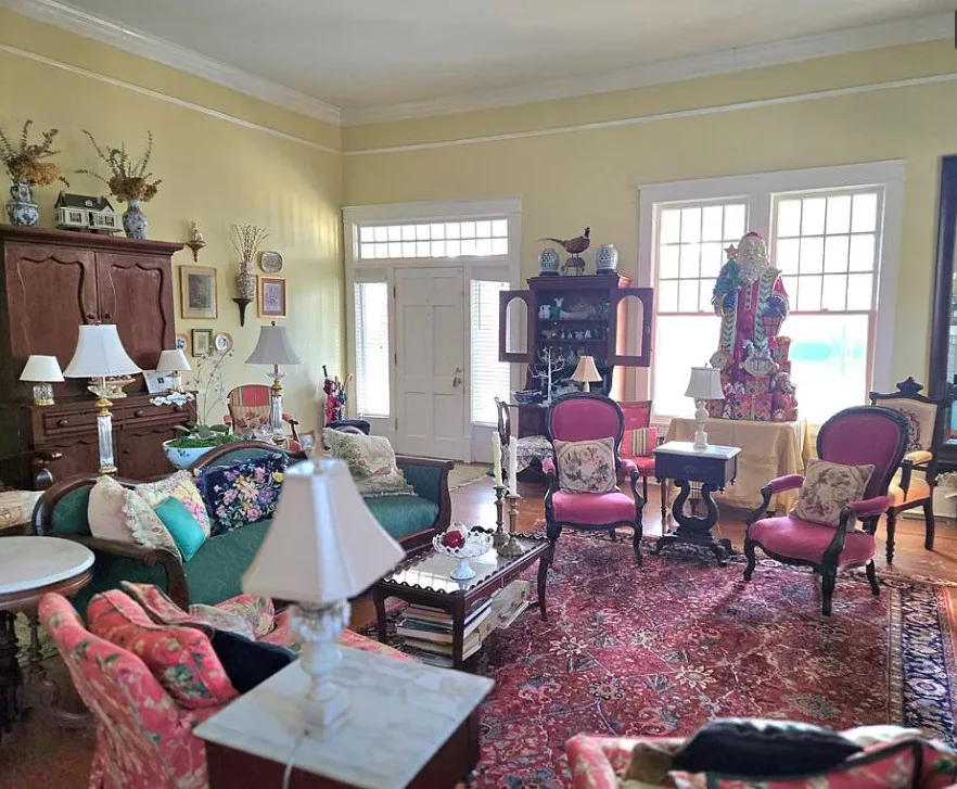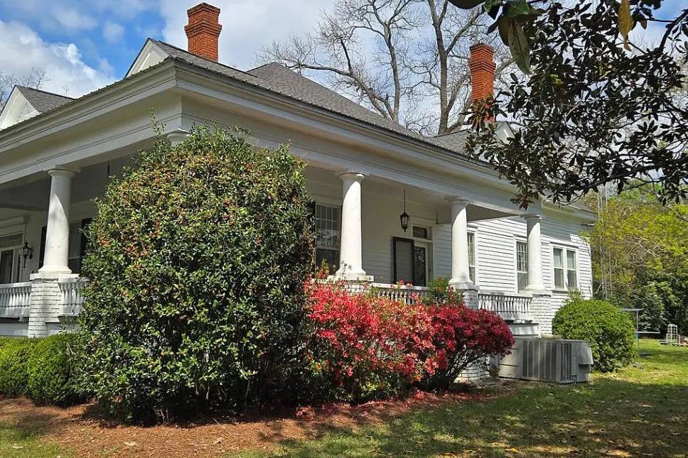 Porch goals! What a great porch! This house was built in 1910. It is located on 1.04 acres in Leslie, Georgia. The house features a large wrap around front porch, a porte cochere, tall ceilings, wood floors, crown moulding, picture rails, french doors, transom windows, wainscoting and wide baseboards. There will be an estate sale at the house on March 28, 29 and 30th. They have some nice items in there. Three bedrooms, three bathrooms and 3,177 square feet. $265,000