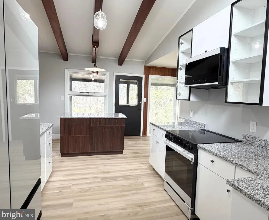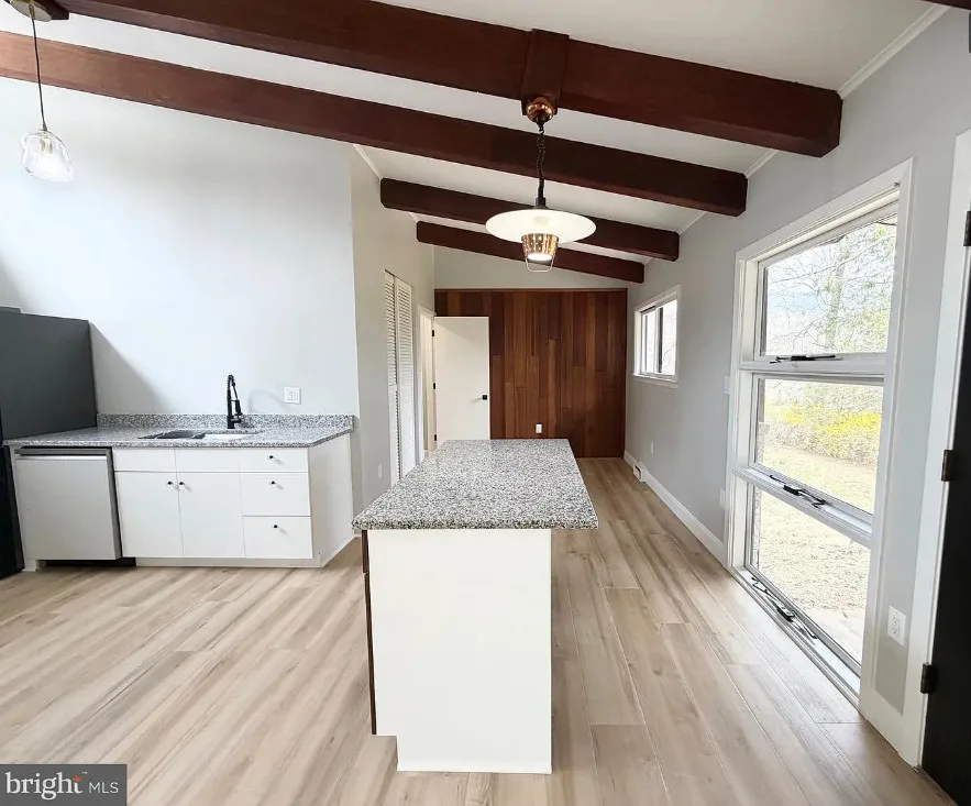 Step right into your very own slice of cool—this mid-century modern beauty is anything but ordinary. Originally a Redwood home-kit all the way from California (yes, really!), this one-of-a-kind gem brings serious character you won’t find anywhere else nearby. Inside, the vaulted kitchen ceilings set the tone for an open, airy vibe, perfectly paired with a sleek, modern kitchen. The living room fireplace adds just the right amount of cozy to balance all that style. Freshly painted from top to bottom (inside and out), this home is shining bright with new luxury plank flooring in the main living spaces, custom tile work in the primary bath, and those charming original square-pattern hardwood floors holding it down in the bedrooms—because some classics are just too good to change. Downstairs, the finished den plus oversized laundry and workshop area opens the door to endless possibilities—home gym, game room, bar hangout, hobby haven…you name it. Out back, nature’s got your back—enjoy a private setting from your covered porch. You’re tucked away on a quiet dead-end street right in the heart of Lavale, with parks just a short stroll away. Mid-century charm, modern updates, and a layout that keeps things interesting—this home isn’t just a place to live, it’s a conversation starter.