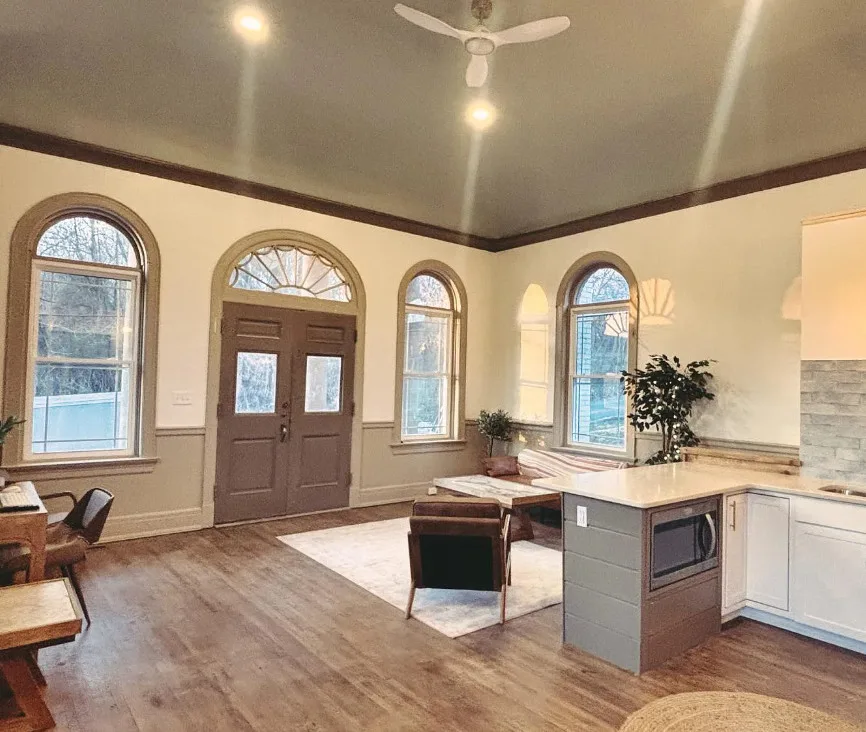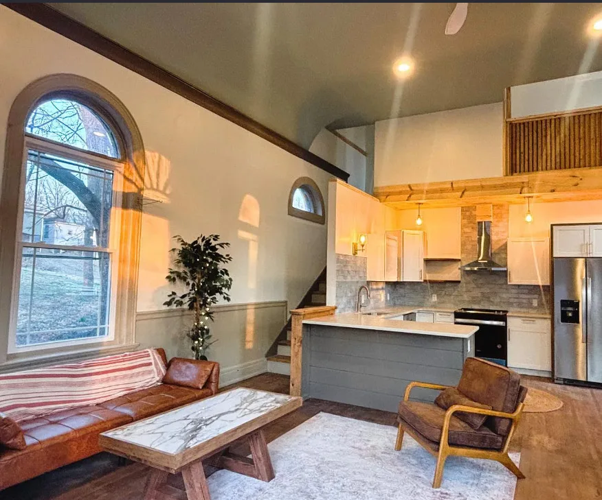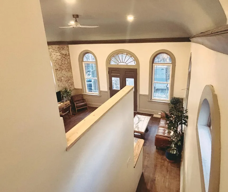RARE 1889 Bank Building is now a stunning dream home! Imagine walking into your own piece of living historywhere grand columns and white-brick architecture still turn heads, but inside you’re surrounded by modern luxury that feels like it was built just for you! This one-of-a-kind former bank has been completely transformed into a 3-bed, 2.5 bath residence in an area with low inventory! Picture yourself in the open-concept living space with soaring ceilings, exposed wood beams, and original brick accents that radiate warmth and character. Sunlight pours through arched windows while you cook in the gourmet kitchen featuring white shaker cabinets, a large bar, quartz counters, stainless appliances, and a stylish tile backsplash. The dramatic loft overlooks the living space with refinished original hardwood floors. The front porch and rear deck are perfect for peaceful morning coffee or evening sunsets. This architectural masterpiece is a rare blend of historic charm and modernity.
