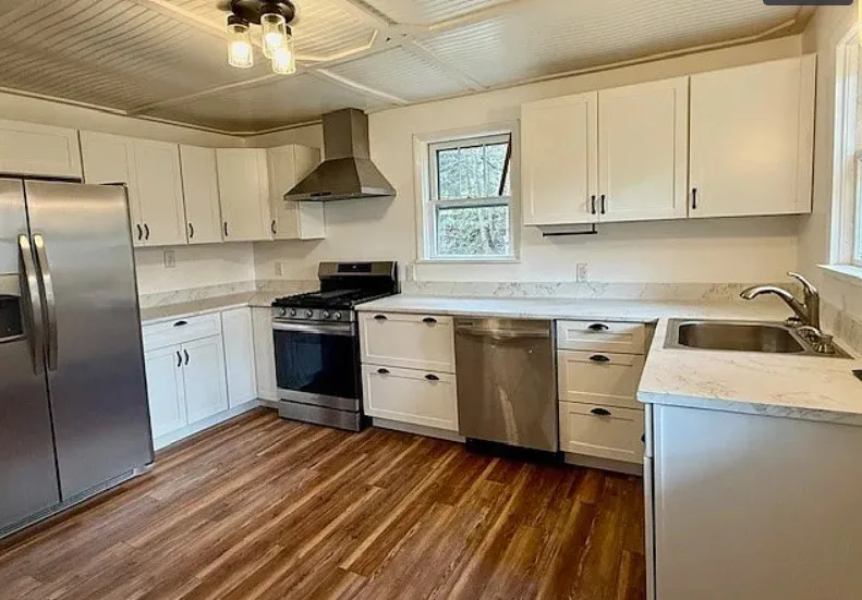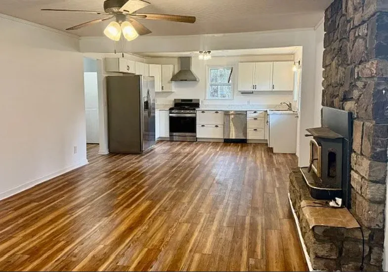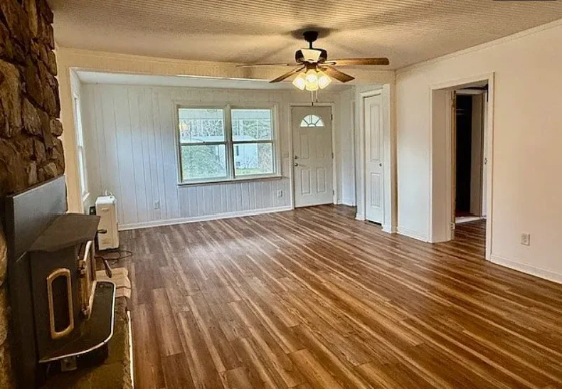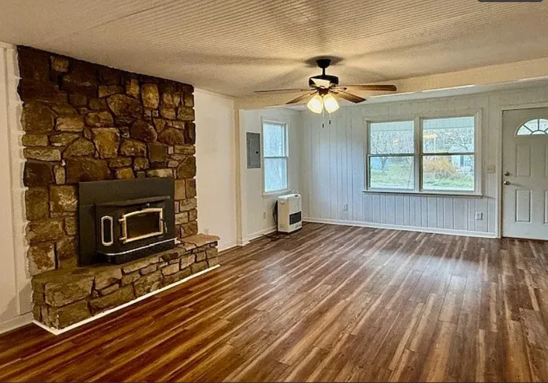 That is a big chimney! This is a cute mountain cottage! This house was affected by Hurricane Helene. The sellers have made all of the necessary repairs and updated the house’s systems. They have been able to secure flood insurance. The cottage was built in 1936. It is located on .47 acre in Elk Park, North Carolina. There is a detached carport on the property and a creek. Two bedrooms, one bathroom and 1,162 square feet. $225,000