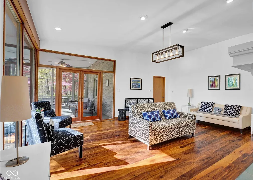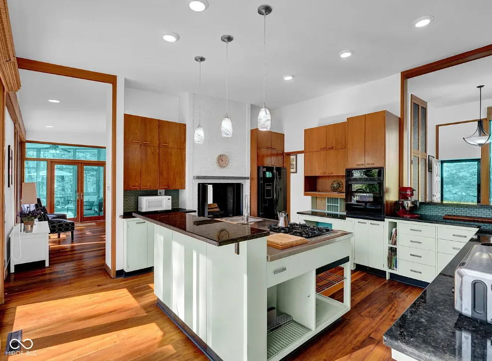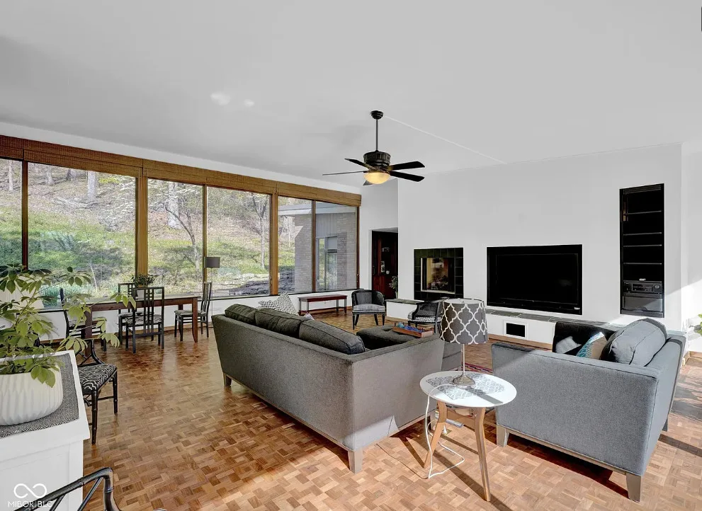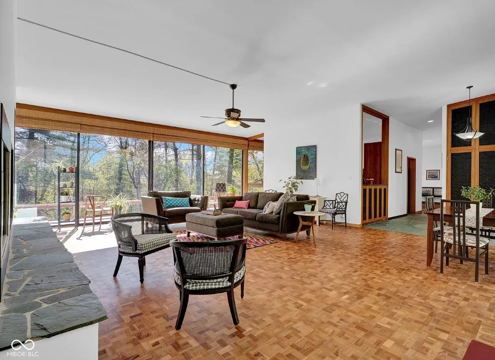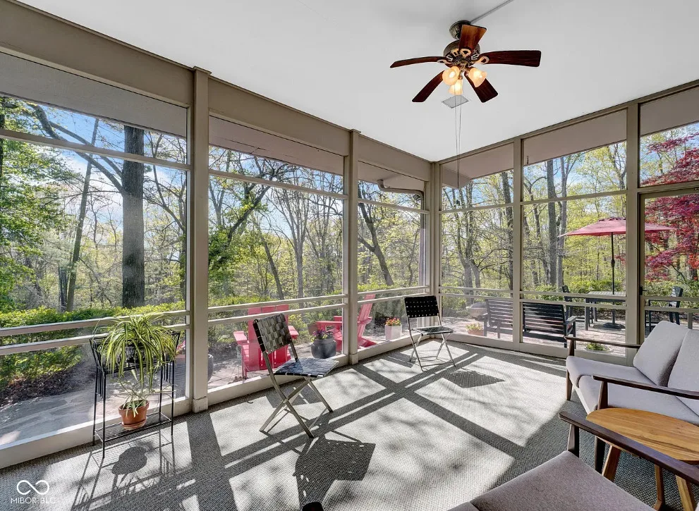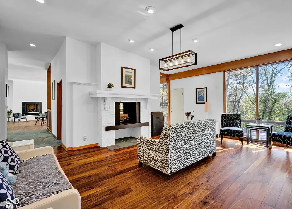 Discover a rare opportunity to own a stunning mid-century modern retreat set on over 4 private acres in Columbus! Located at 9806 Raintree Dr N, this one-of-a-kind property seamlessly blends timeless architecture with serene natural surroundings. True to mid-century design, the home showcases clean lines, expansive windows, and an open, flowing layout that brings the outdoors in. Natural light pours into the main living spaces, highlighting the home’s character and creating a warm, inviting atmosphere. Multiple fireplaces serve as striking focal points throughout the home, adding both architectural charm and cozy gathering spaces perfect for Indiana seasons. The spacious living and dining areas are ideal for entertaining, while the kitchen offers functionality and style with a touch of connection to the main living spaces. The bedrooms provide comfortable, private retreats, including a relaxing primary suite, all thoughtfully designed with mid-century character in mind. Step outside and experience a true highlight of this property-over 4 acres of peaceful, wooded surroundings. Whether you’re enjoying your morning coffee by the fire, hosting gatherings, or simply taking in the beauty of nature, this expansive setting offers unmatched privacy and endless possibilities. Distinctive mid-century charm in a private, tranquil setting all within close proximity to Columbus amenities
