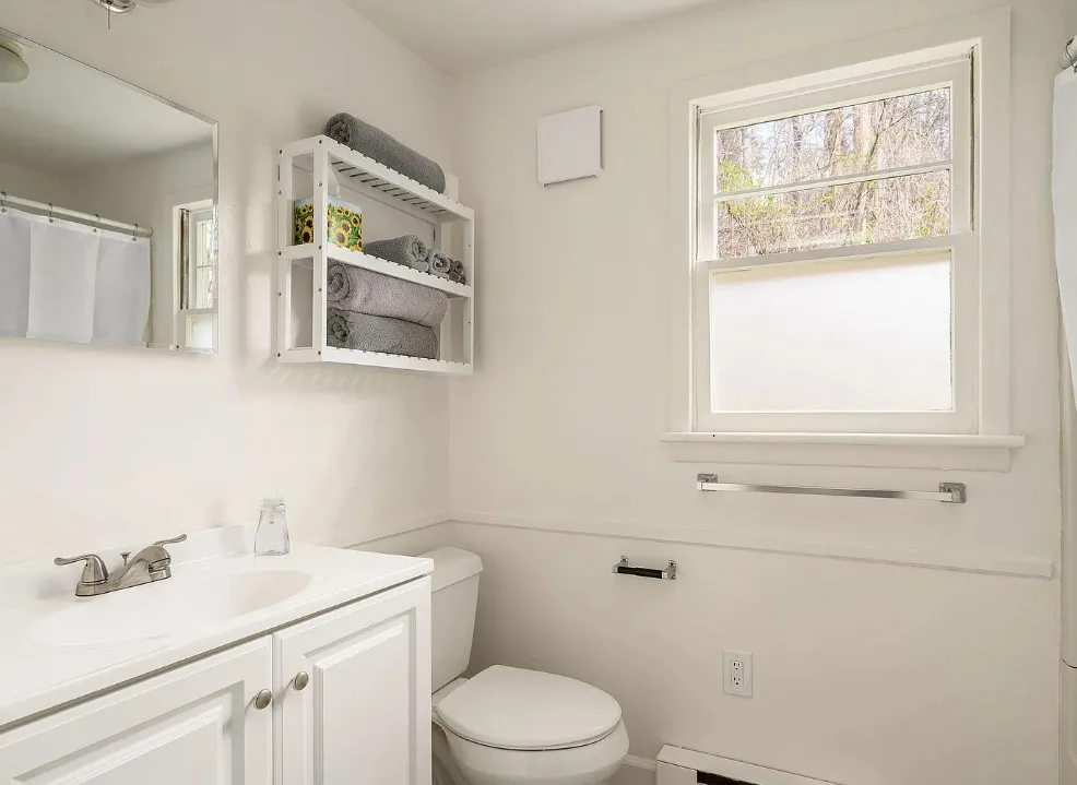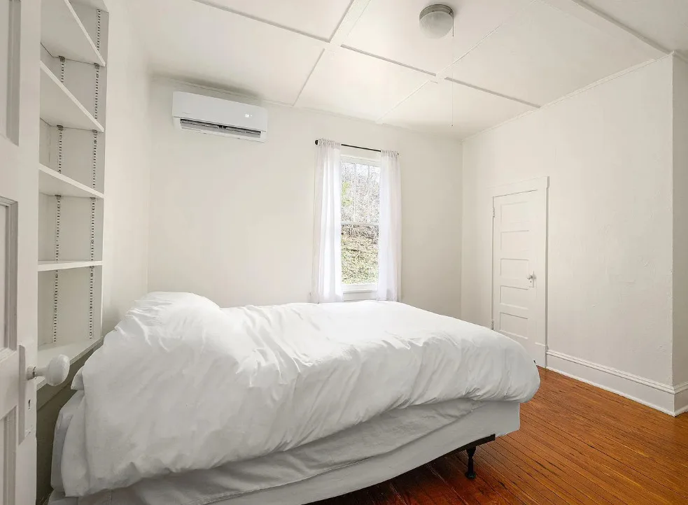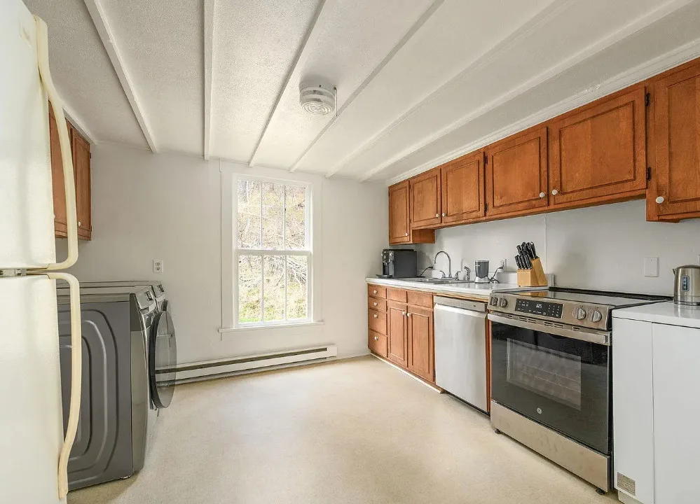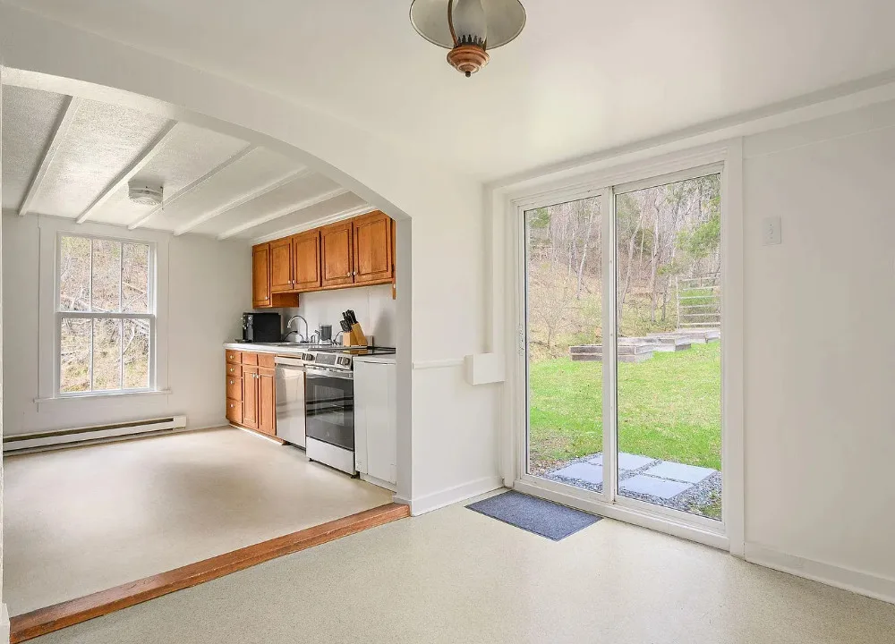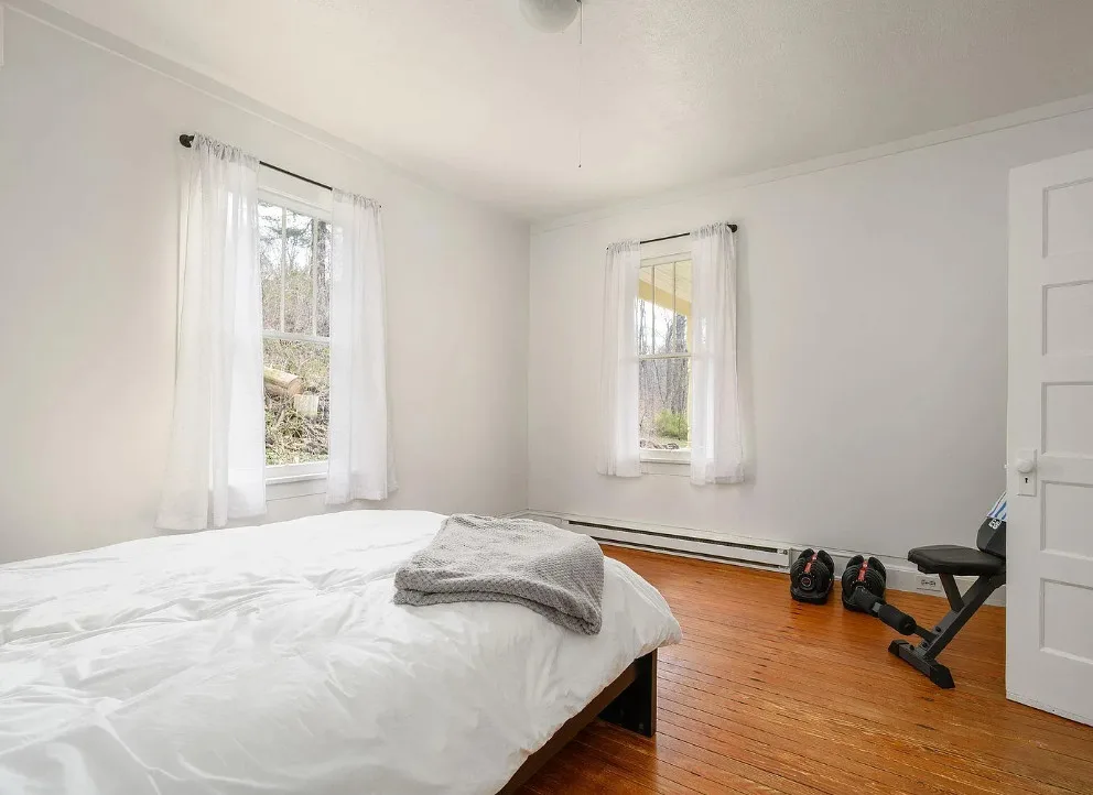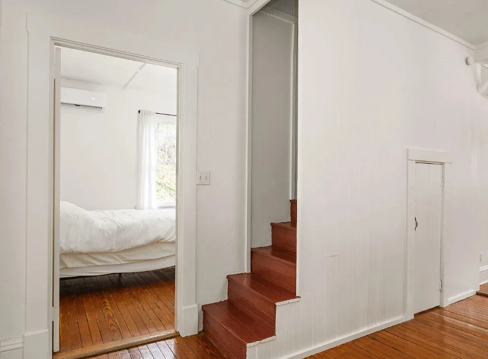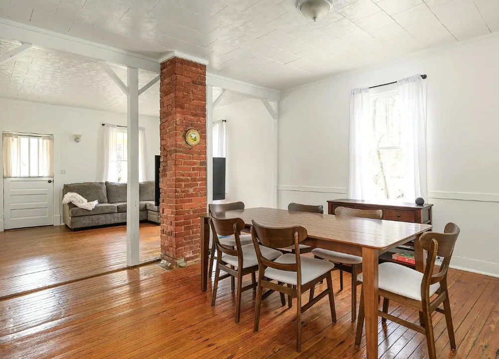 This is such a beautiful setting! That pond is really pretty and there is a seasonal spring on the property. The house was built in 1925. It is located on 5.8 acres in Faber, Virginia. This is situated in Nelson County. If you haven’t driven through that county, you are missing out. The house features a covered front porch, original wood floors, crown moulding and baseboards. There are a couple of detached storage buildings on the property and raised garden beds. Two bedrooms, one bathroom and 1,316 square feet. $348,000