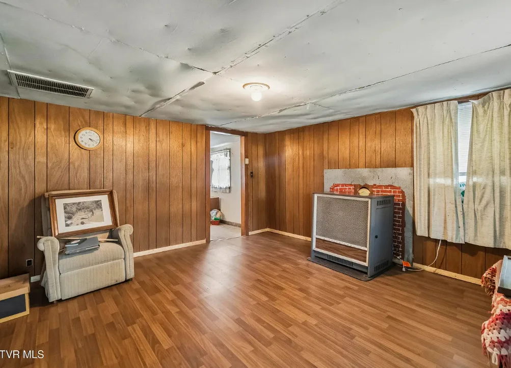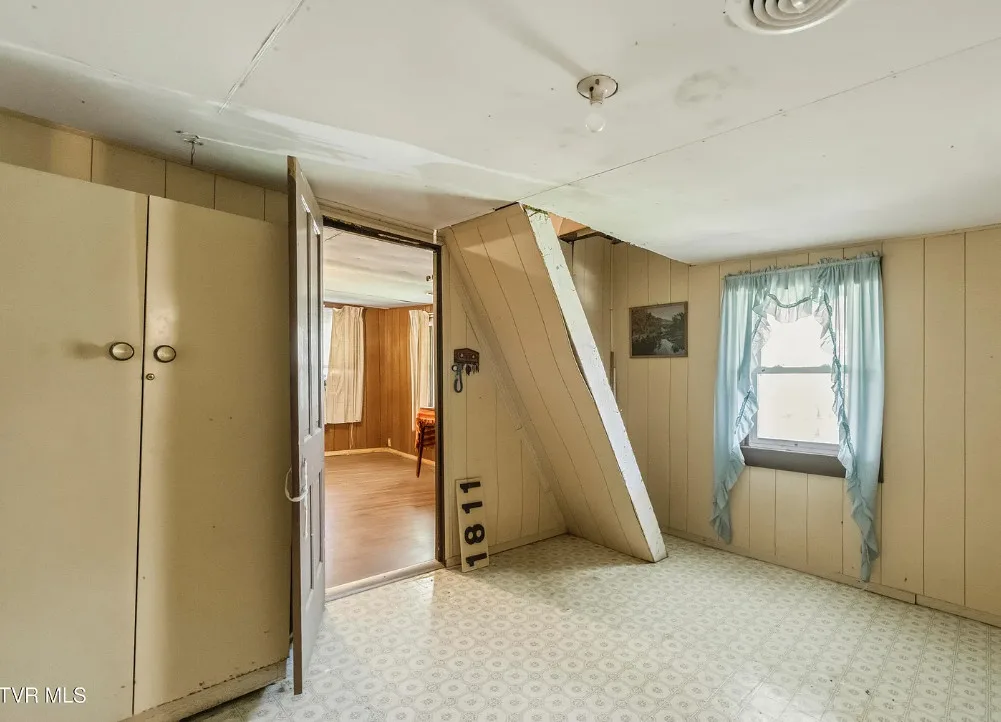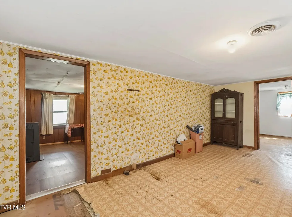 That is a really pretty creek! Would love to explore it! The house was built in 1910. It is located on 9.56 acres in Greeneville, Tennessee. The house could definitely use some work and updating, but I sure love the property. There is a large barn on the land. The property is private and surrounded by woods. Two bedrooms, one bathroom and 840 square feet. $179,900