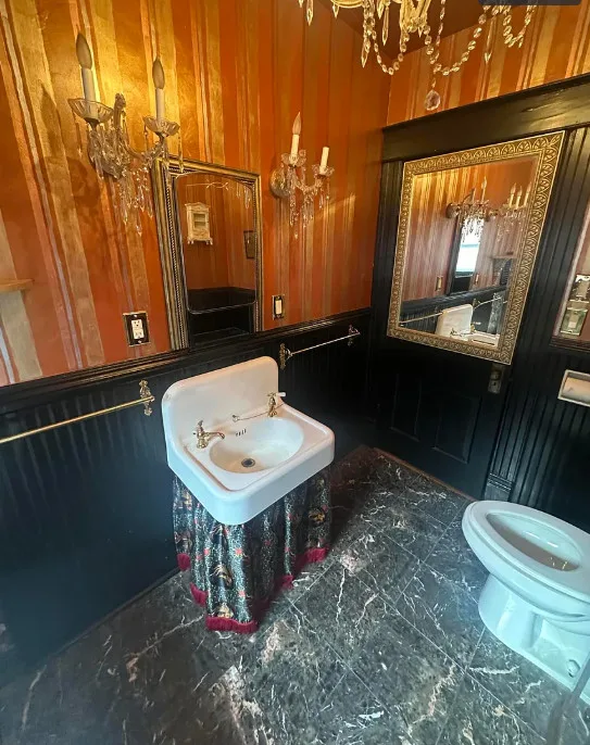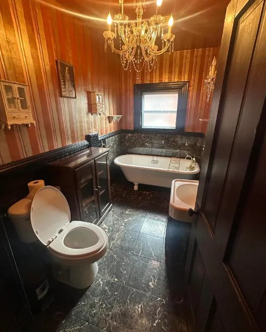 Love the bathroom with the chandelier! Circa 1922 in Virginia.