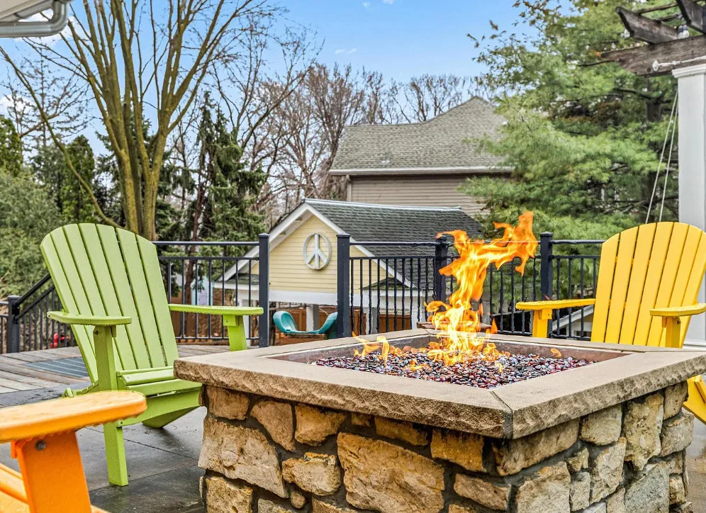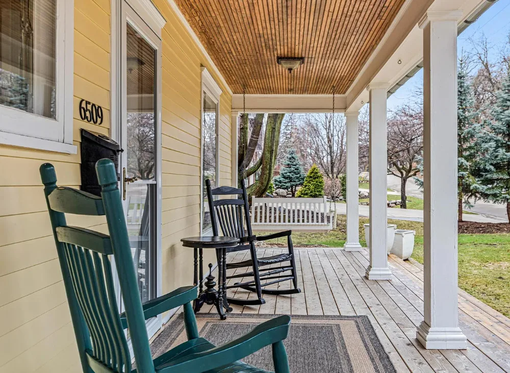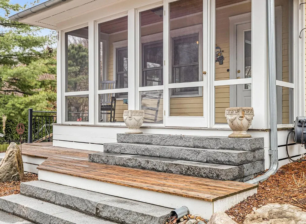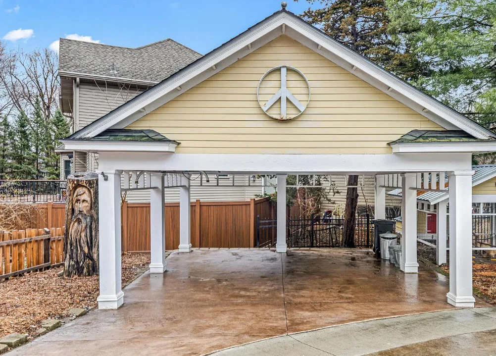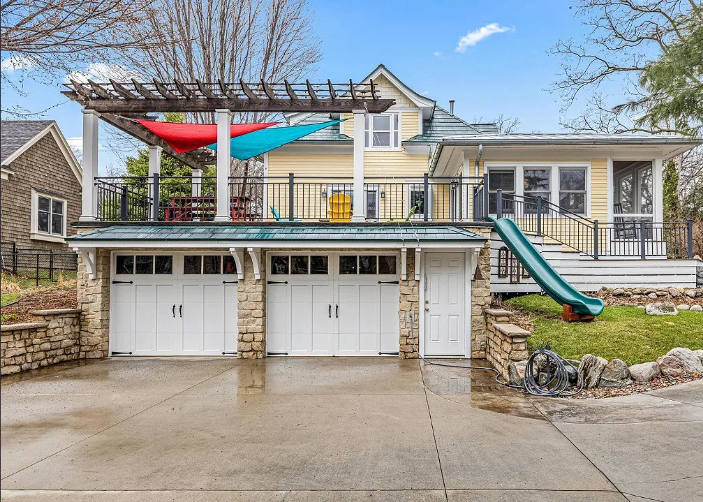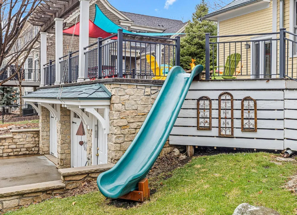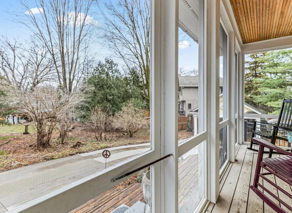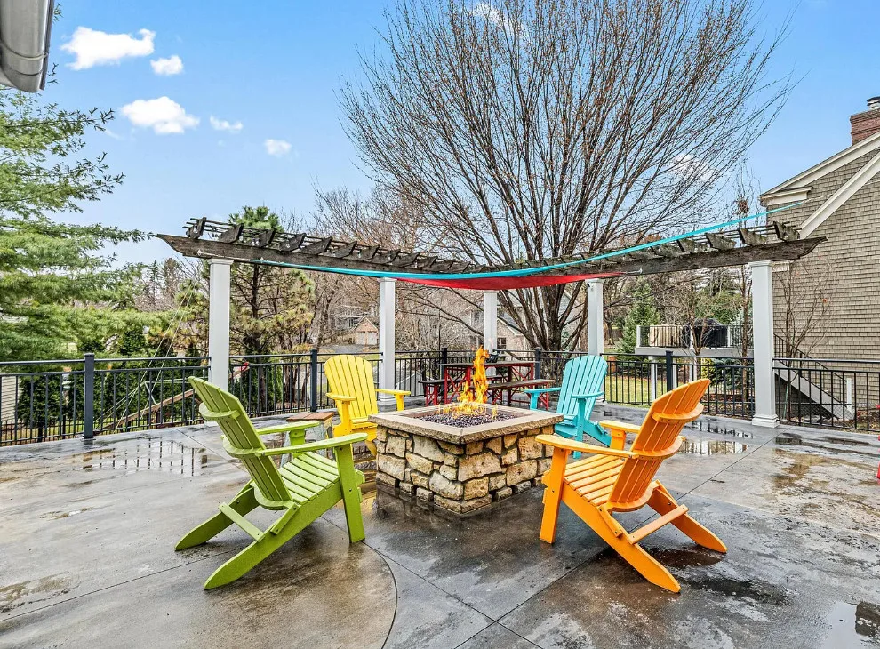 Totally using the slide instead of the stairs! Anyone else? This house is really pretty and a great house for entertaining! The house was built in 1912. It is located on .29 acre in Edina, Minnesota. The house features a large wrap around front porch, nice curb appeal, enclosed side porch, wood floors, leaded glass, wide baseboards, a lot of natural light, built-ins, back staircase, spacious kitchen, crown moulding, picture rails, bead board, updated bathrooms, finished basement with media room and a large back patio with fire pit. There is a detached garage and a carport on the property. Four bedrooms, three bathrooms and 3,099 square feet. $650,000