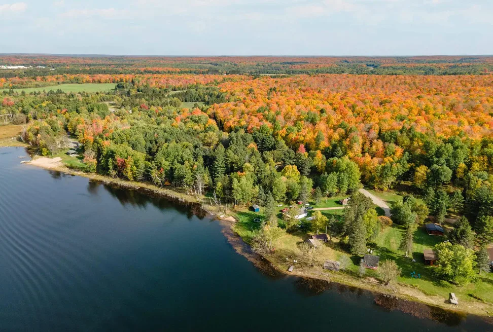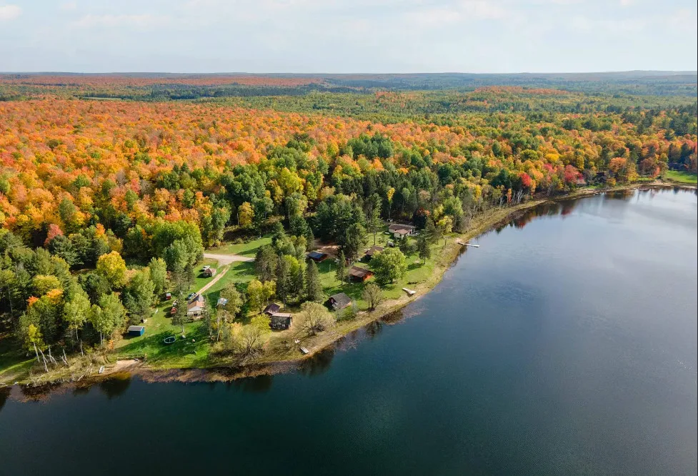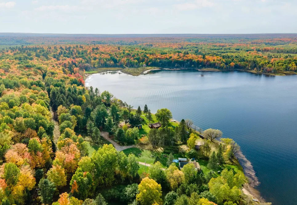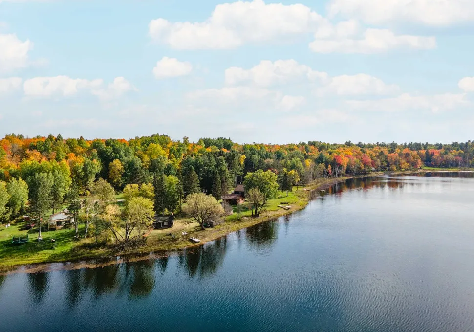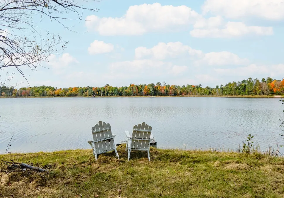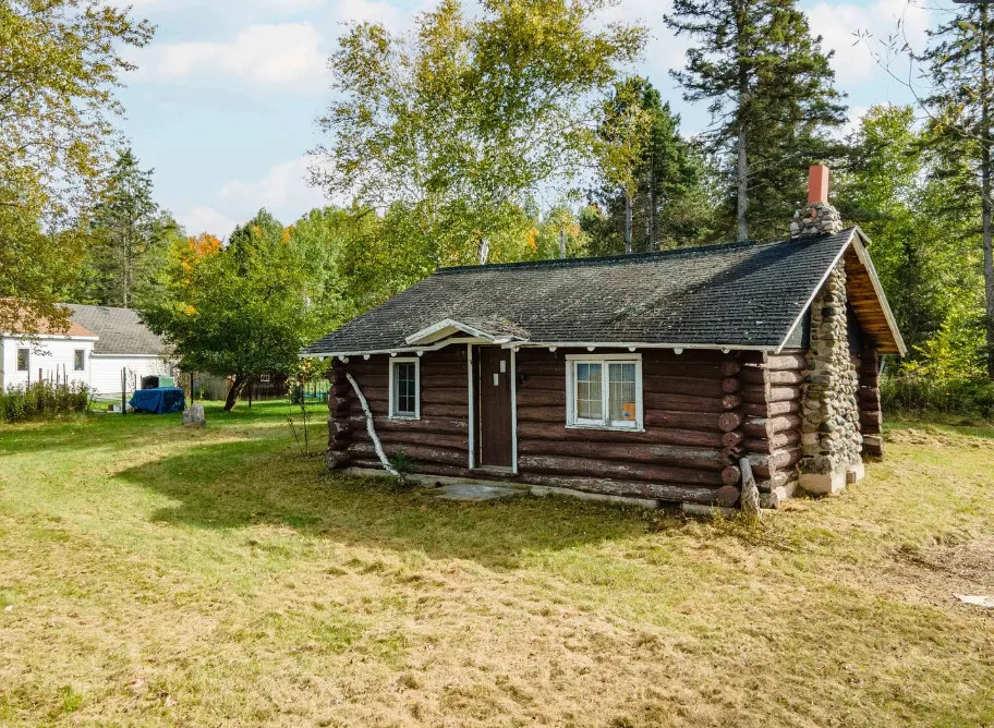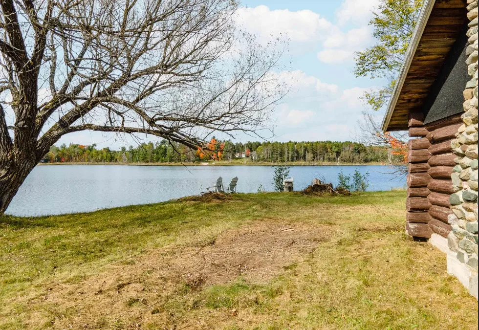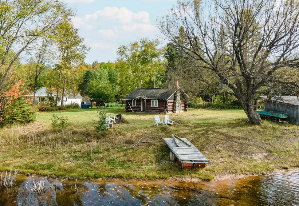 Waterfront in Michigan! Love that stone chimney! C. 1950.