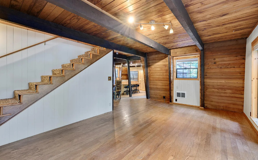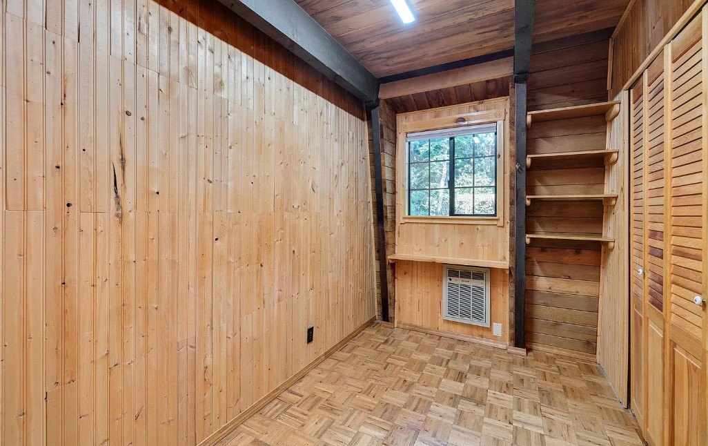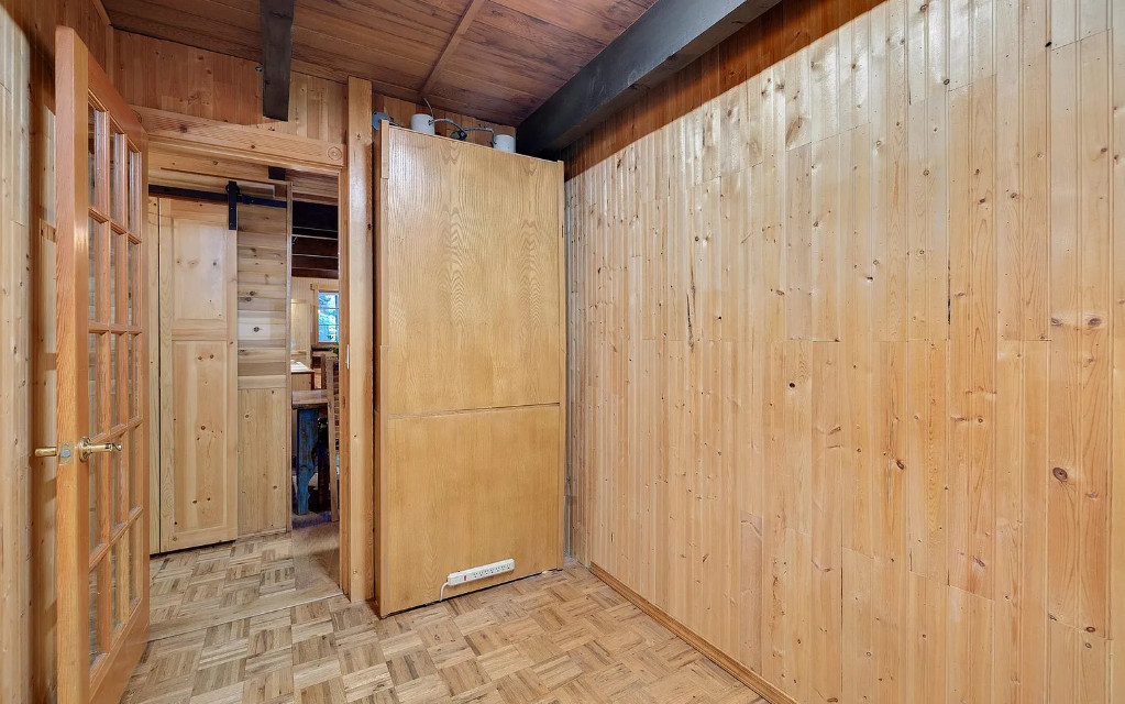 Great wrought iron fence! Pretty mantel! Circa 1940 in Oregon