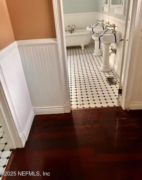 Total porch goals! Those are great! This is a foreclosure property and was originally listed at almost $500,000, but was listed as an auction. Since then, it went under contract once, fell out and now the price keeps getting lowered. Nice acreage! The house was built in 1902. It is located on 7.64 acres in Wellborn, Florida. The house features double wrap around porches, wood floors, screened in back porch, brick fireplace, wide baseboards, wainscoting and a claw foot tub. Four bedrooms, two bathrooms and 3,868 square feet. $350,000