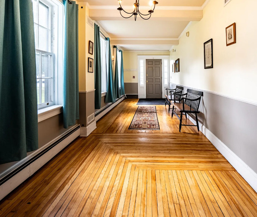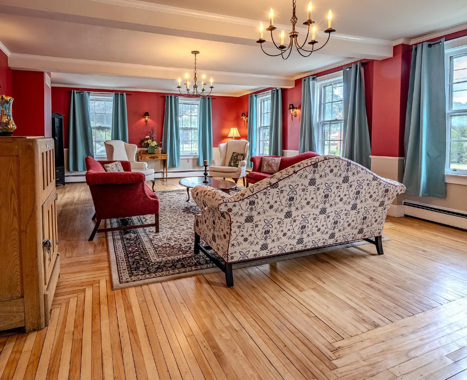 This property is known as The Two Editors Inn. It honors two notable citizens, Horace Greeley and George Jones. They worked on their printing skills in the town before going on to form the The New York Tribune and the New York Times. This was built in the mid 1800’s. It is located Poultney, Vermont. The house features a covered front porch, hardwood floors, baseboards, crown moulding, exposed beams and a commercial kitchen. Five bedrooms, four bathrooms and 2,501 square feet. $438,000