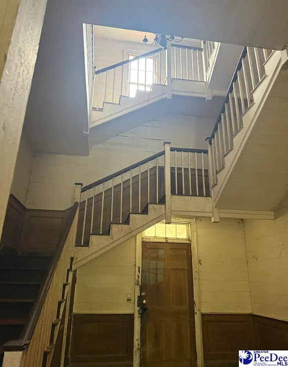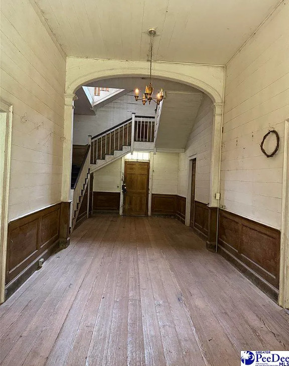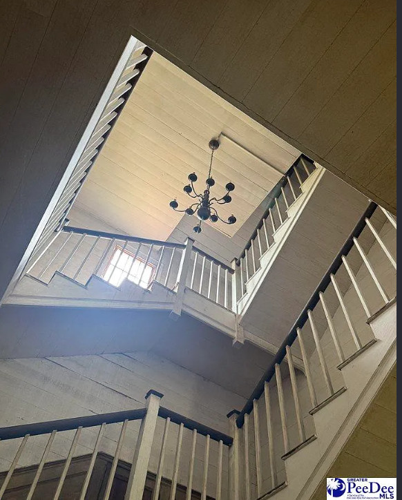 This house has such tall ceilings! The acreage is nice! The house was built in 1793. It is located on 6.13 acres in Bishopville, South Carolina. The house features a large covered front porch, beautiful front door surround, working shutters, large foyer, grand staircase, wainscoting, wood floors and original mantels. Four bedrooms, two bathrooms and 5,313 square feet. $225,000