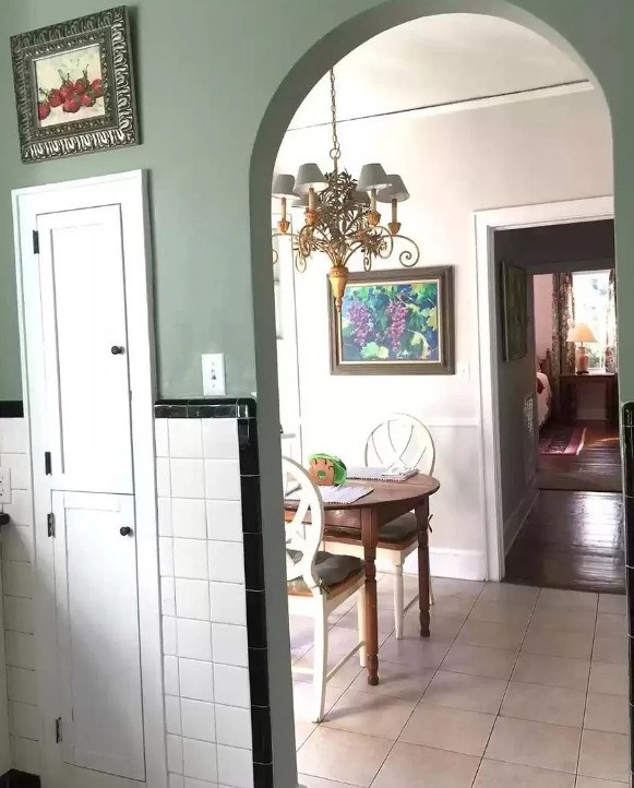 I love the wrought iron fence! The fence is from 1859. The house is known as the Iron Fence Home. It has a beautiful interior! The house was built in 1940. It is located on one acre in Bishopville, South Carolina. The house features a beautiful wrought iron fence, a covered porch, wood floors, crown moulding, baseboards and crystal chandelier. There is a detached building that is electrified and could be used as office space. Two bedrooms, one bathroom and 2,158 square feet. $220,000