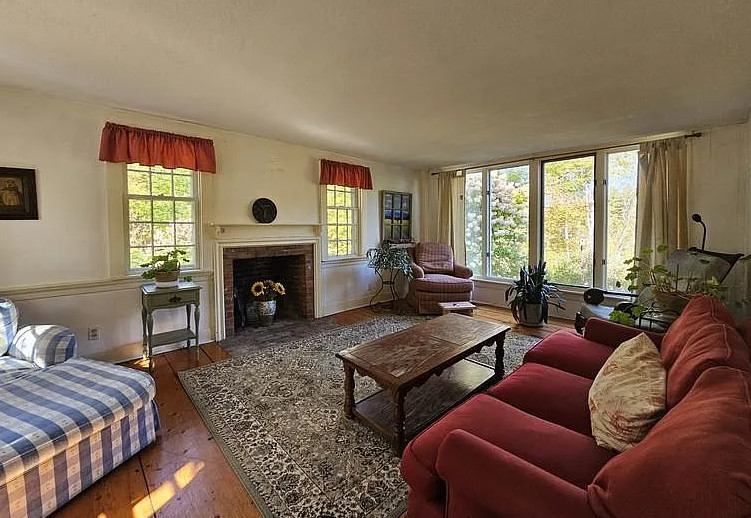 This house has such a pretty setting! Love the wide plank floors! There is a guest apartment on the property. The house was built in 1875. It is located on 5.08 acres in Windham, Vermont. The house features wide plank wood floors, wainscoting, crown moulding, baseboards, chair rails, exposed beams, built-in bookshelves and a spacious kitchen. There is a detached garage with a guest apartment above it. The apartment has a good rental history. Four bedrooms, four bathrooms and 3,152 square feet. $549,000