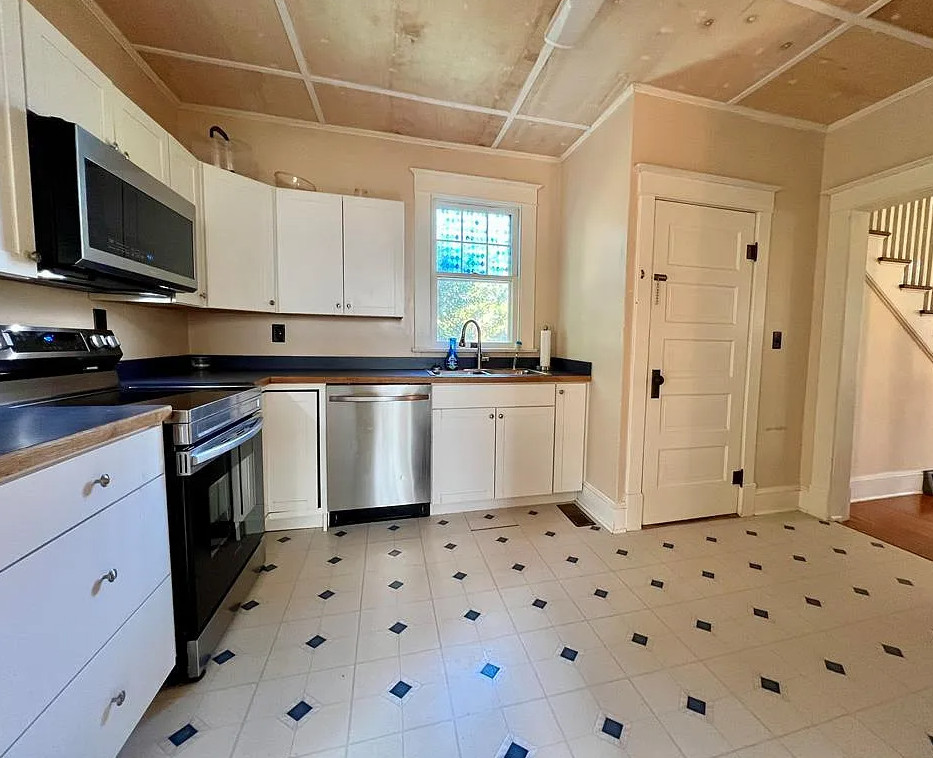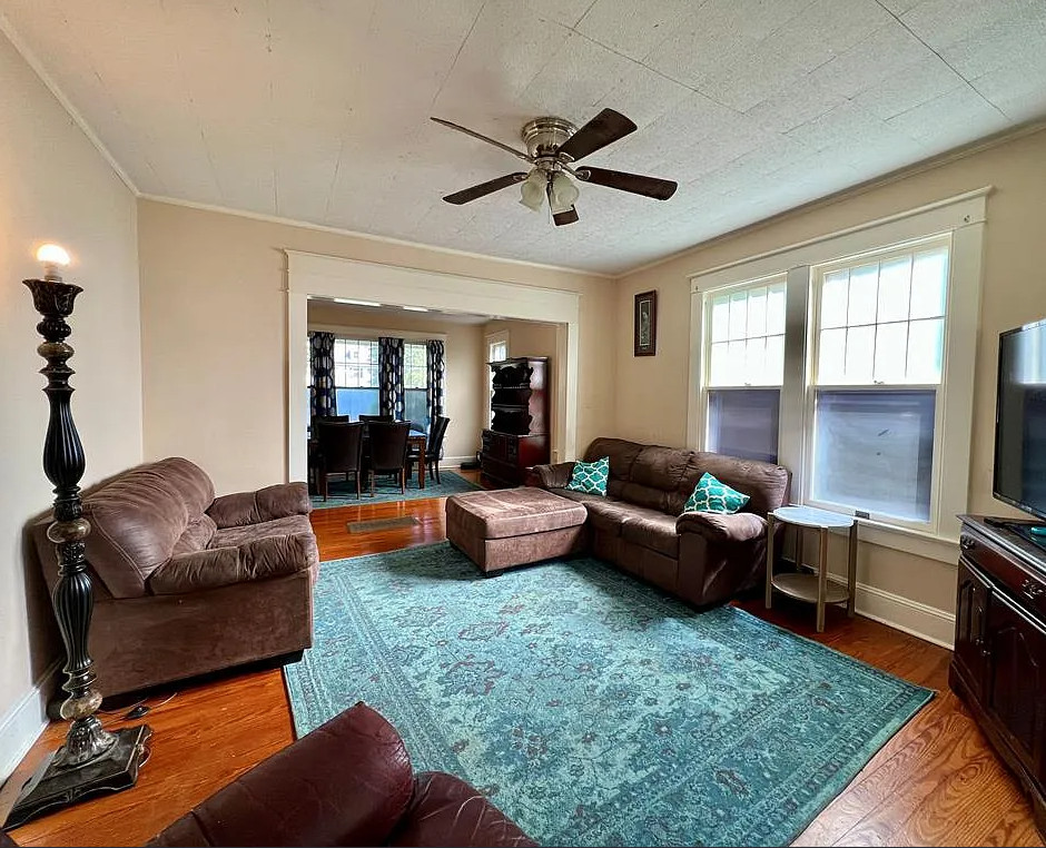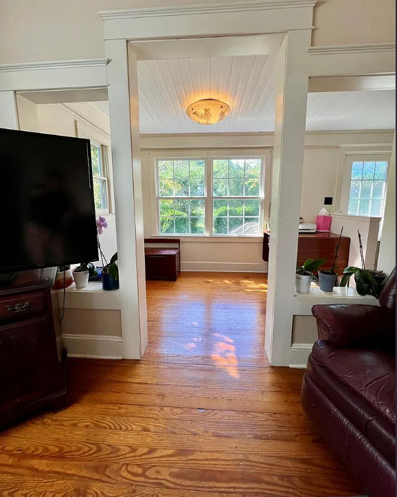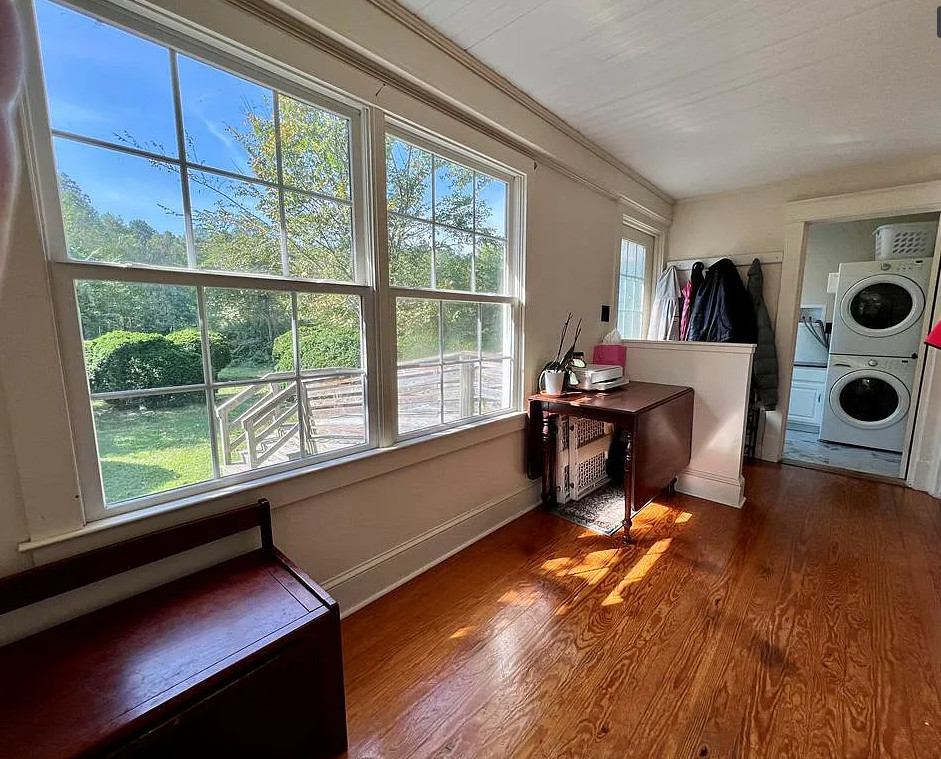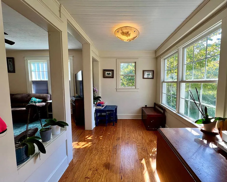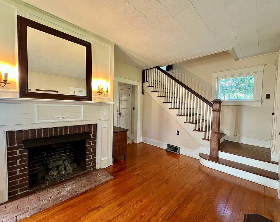 This move in ready house has pretty details inside! Looks like it was possibly a Sears kit house. The home was built in 1925. It is located on 1.16 acres in Heathsville, Virginia. The house features a covered front porch, original wood floors, crown moulding, baseboards, brick fireplace, nice staircase and solid wood doors with original hardware. There is a large detached garage on the property. Three bedrooms, two bathrooms and 1,610 square feet. $269,000