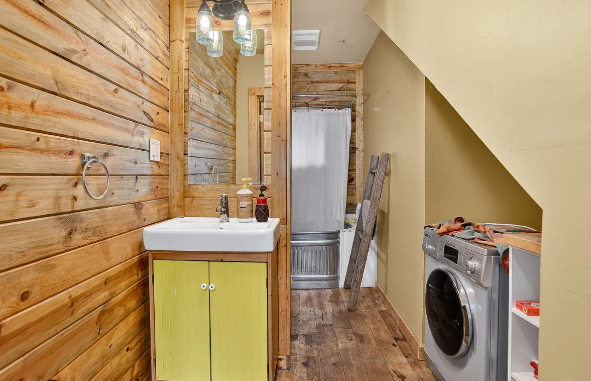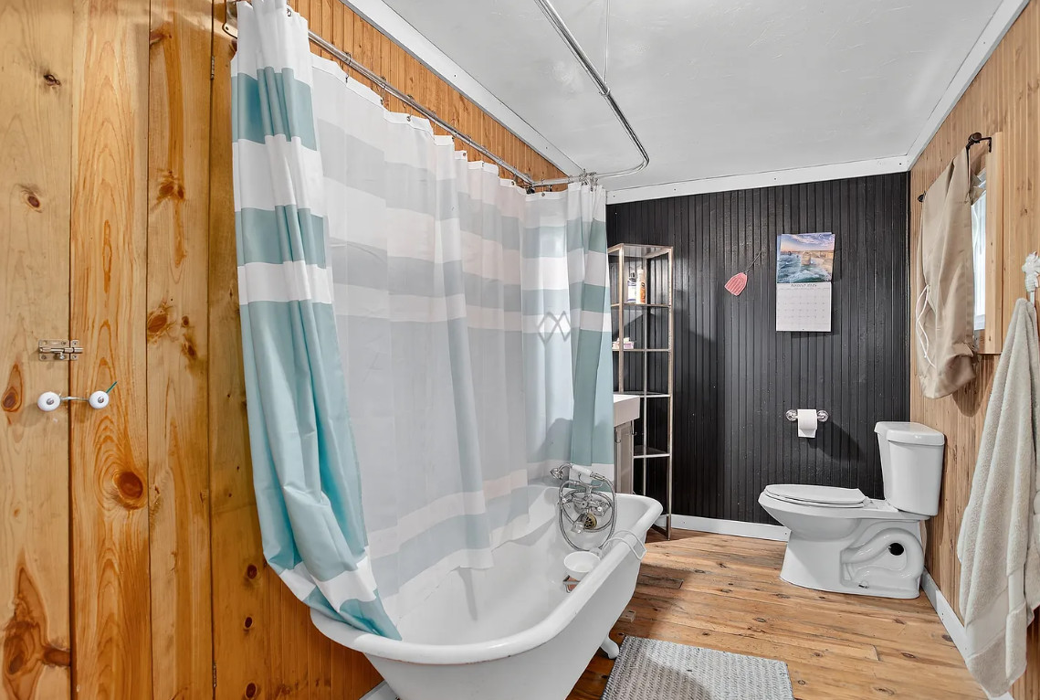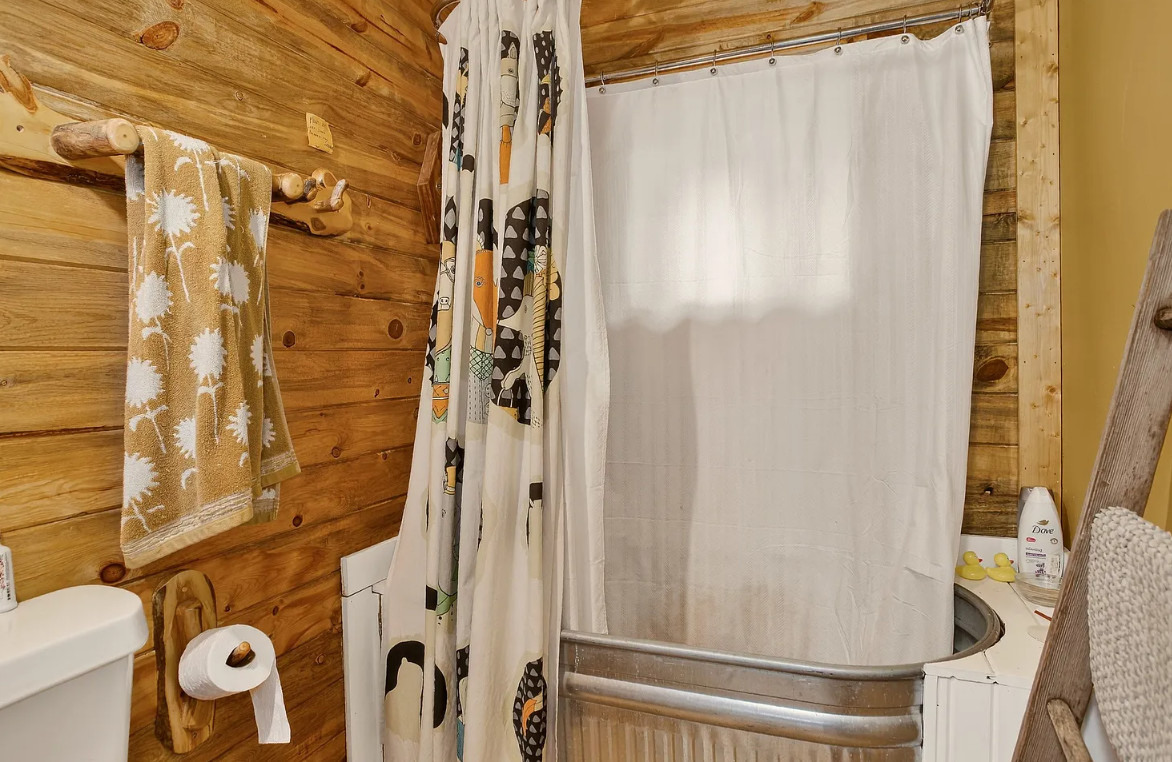 That sure is a beautiful stove in this house! Pretty setting! The cabin is being sold fully furnished. The house was built in 1905. It is located on .41 acre in Pine, Colorado. The house features a large deck, wood floors, log walls, vaulted ceiling, knotty pine, claw foot tub, raised bed platform and a unique soaking tub. There is a detached storage unit on the property. Two bedrooms, two bathrooms and 1,234 square feet. $389,000