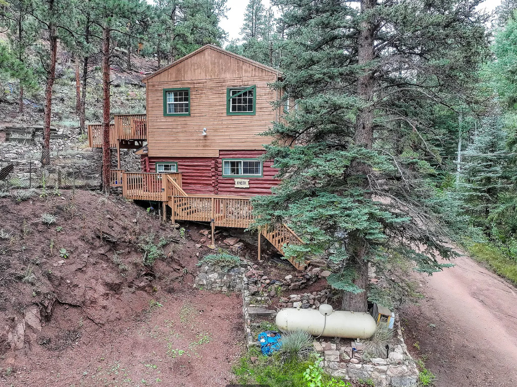 PRICE IMPROVEMENT – PREFERRED LENDER IS OFFERING A 1% NO CHARGE INTEREST RATE RATE BUY DOWN. Remodeled Kitchen and bathrooms. Fully Paid For and Included Solar Panels. ALL HARD WOOD FLOORS! NO CARPETS. Historic Sphinx Park Cabin with Updated Comforts. Nestled among towering pines and dramatic rock outcroppings of Buffalo Creek, this enchanting 1905 log cabin—originally the Buffalo Creek carriage house— offers the perfect Colorado mountain retreat. Blending historic character with thoughtful updates, the home provides a warm, inviting escape just minutes from Highway 285 and the charm of Buffalo Creek. Inside, you’ll find classic log walls, wood floors, and cozy living spaces accented by stonework and a wood-burning stove. The updated kitchen balances rustic decor with modern function, featuring a vintage-inspired range, butcher block counters, and open shelving. The open dining and living areas invite connection, with multiple windows framing the surrounding forest. Upstairs, the loft-style primary suite boasts vaulted ceilings, a private deck, and an abundance of natural light. An additional bedroom with a charming built-in platform bed offers flexibility for guests, a home office, or rental use. Bathrooms include both a custom soaking tub and a classic clawfoot tub, adding to the home’s historic charm. Step outside to one of the multiple decks where you can sip morning coffee, entertain family and friends, or stargaze beneath Colorado’s dark skies. Solar panels, a durable metal roof, and storage areas beneath the home provide both efficiency and practicality. Adventure is always close by—hike, bike, or climb in the nearby trails, fish the South Platte River, take a spontaneous dip at the Chutes, or enjoy live music at the Bucksnort Saloon. Fully furnished and move-in ready, this historic cabin is ideal as a year-round residence, weekend escape, or Airbnb investment.