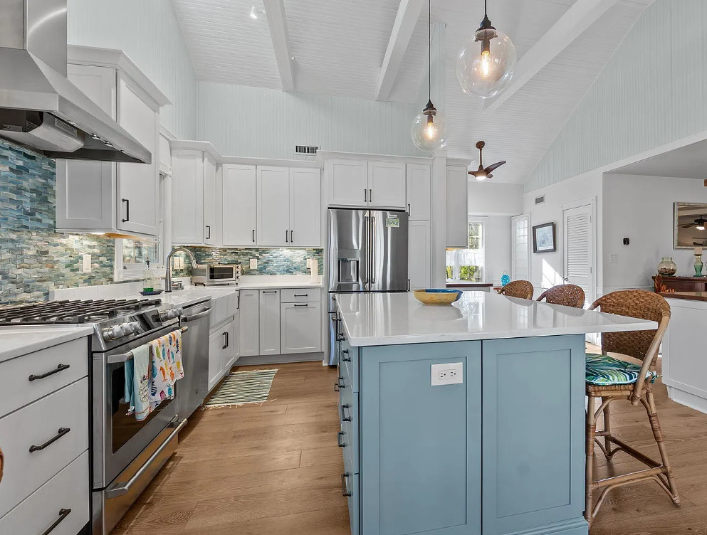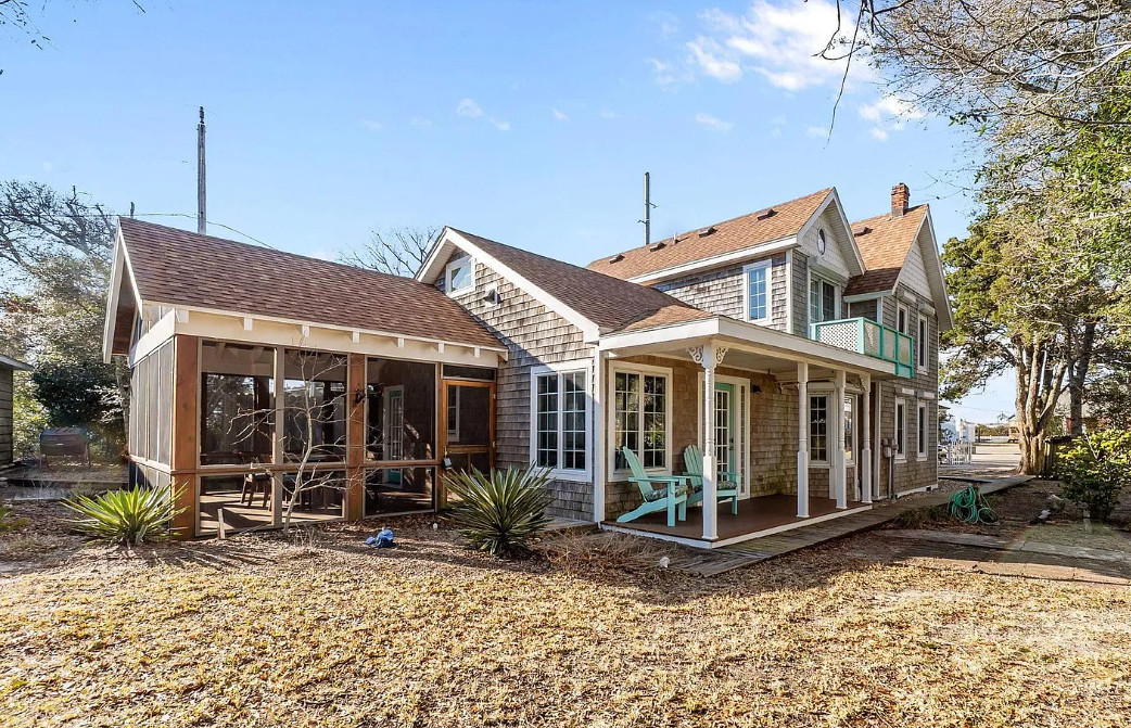 It’s easy to see why this home is one that first bought HGTV to Hatteras Island in 2008! Originally built in 1930, this classic coastal cottage has undergone amazing transformations over the years with the most notable renovation transforming the kitchen into anyone’s dream in 2022. Accessed by the front circular driveway or side entrance to the detached garage/workshop, you’ll be welcomed by the front screened porch, covered side entry, or recent grand screened porch in the rear leading to the back foyer entrance. The kitchen’s cathedral ceilings and open space are flooded with natural light and the island bar will be your favorite gathering space. GE Profile appliances, a farmhouse sink, shaker style cabinetry, and quartz countertops elevate the space. Additional storage cabinets are topped by butcher block tops that lend warmth to the kitchen and the LeCache Mission Credenza wine fridge in the dining area awaits your expansive wine collection. The comfortable and cozy living area includes a gas stove, and a first floor bedroom and bath round off this level. Upstairs is a primary suite with adjoining bath featuring a claw foot tub and separate shower, private balcony, and small room that may be used as a substantial closet or office space. The third bedroom is on this top level as well. Ask for the detailed list of features and updates and be sure to visit this unique and special home as soon as possible. It is ready for immediate occupancy with no obligations to a property manager for vacation rentals.