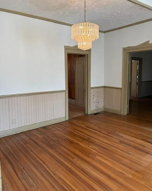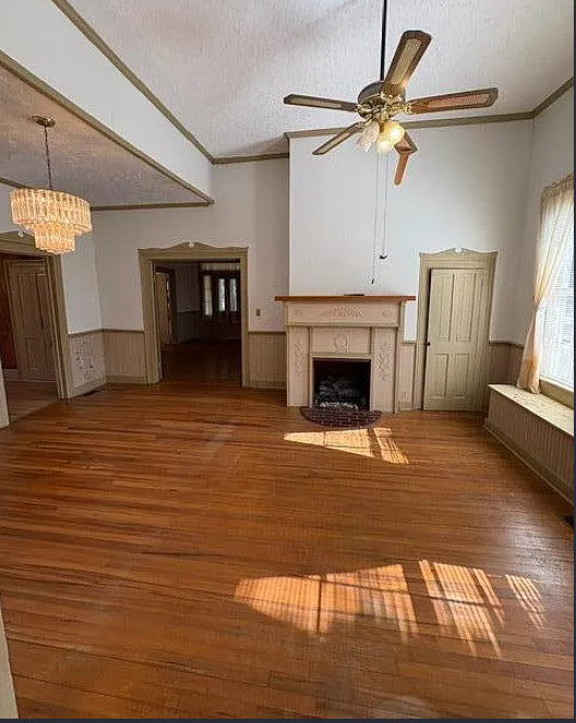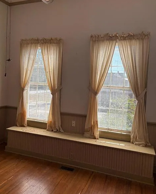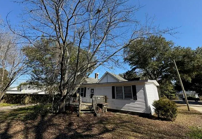This house has some nice details inside! Love the door casements. The house was built in 1925. It is located on .4 acre in Manning, South Carolina. The house features a covered front porch, some wood floors, bead board wainscoting, picture rails, pretty door casements and original mantels. The lot is shaded with mature trees. Four bedrooms, three bathrooms and 2,520 square feet. $159,900