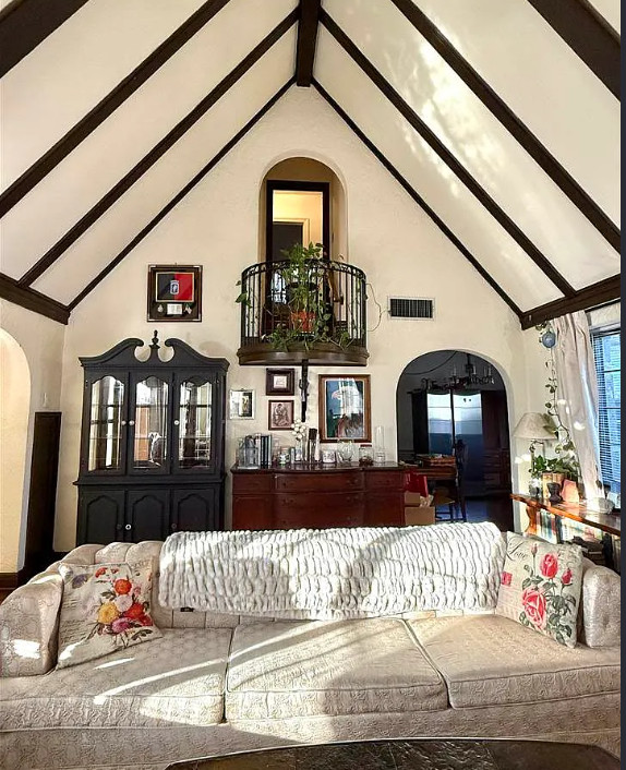 Stone house with vaulted ceilings and a large in-ground pool! The house was built in 1928. It is located in Ponca City, Oklahoma. The house features a stone exterior, arched entryway, vaulted ceiling, wood floors, large fireplace, juliet balcony and a nice craft room. The backyard is fenced with a large in-ground pool, patio and fire pit. Three bedrooms, two bathrooms and 1,958 square feet. $199,000