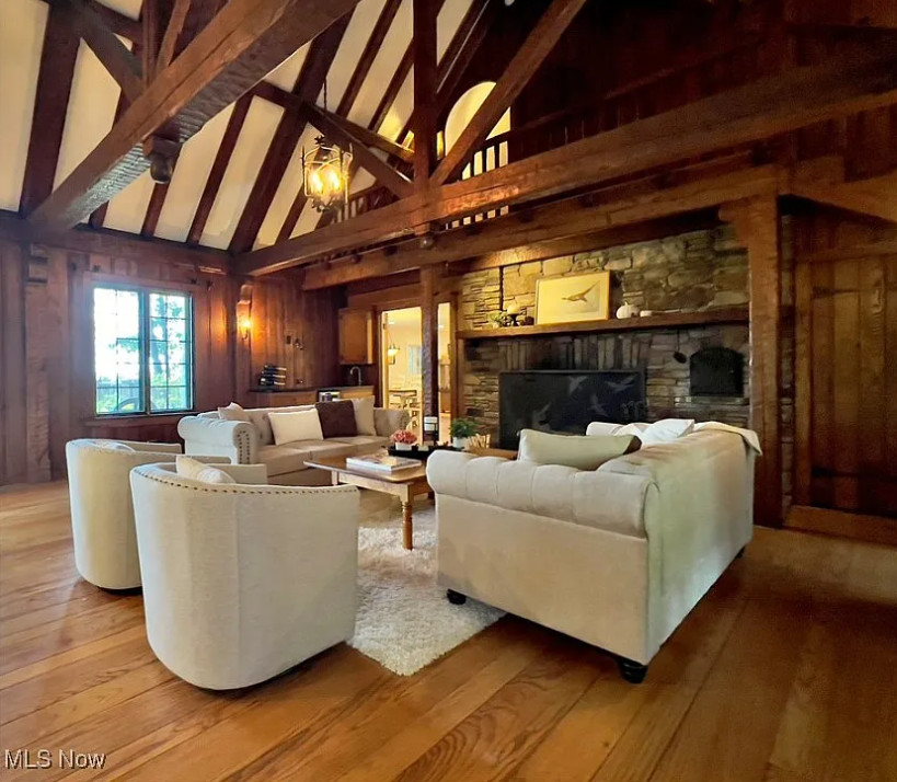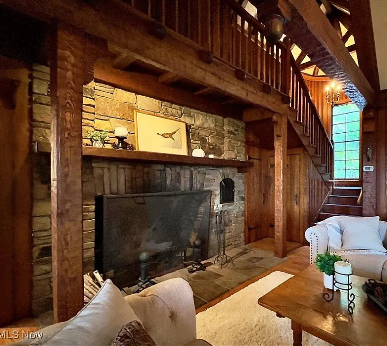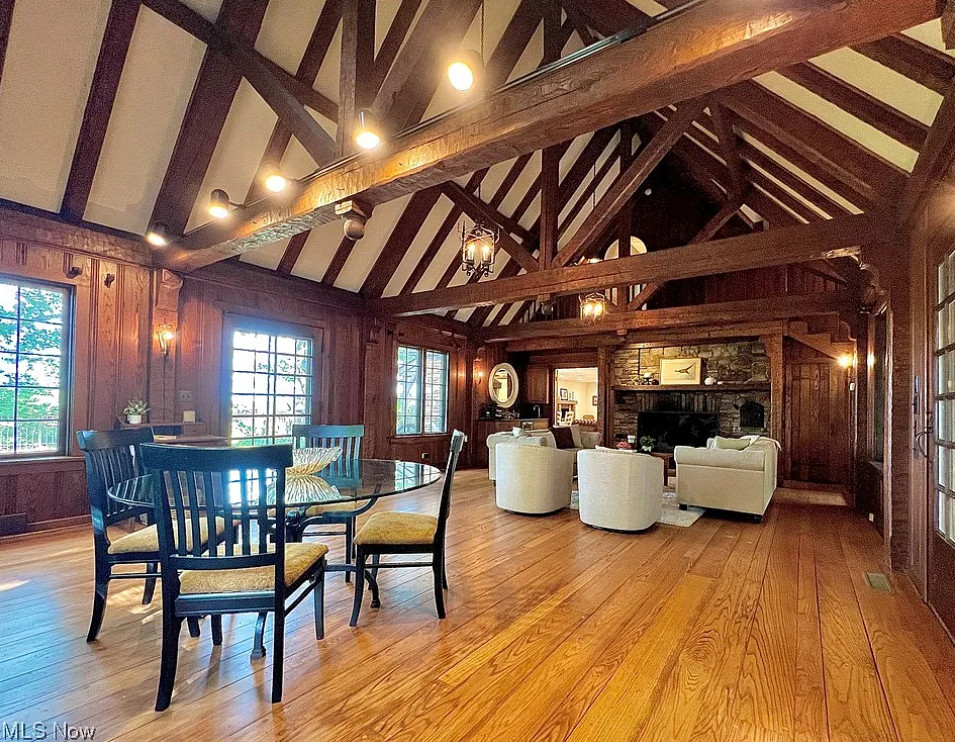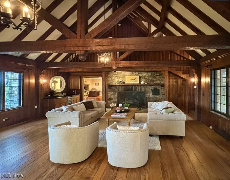 Welcome to Ohio’s most expensive old house listing! Riverstone Farm is beautiful! It started off as a hunting lodge and summer home for wealthy industrialist, Frederic H. Chaplin. Riverstone Farm was built in 1940. It is located on 77 acres in Willoughby, Ohio. The property includes a 3/4 mile driveway, a main house, “Chapin’s Lodge”, a two story guest house, a two story studio barn and a four stall horse barn. Five bedrooms, five bathrooms and 7,600 square feet. $4,400,000