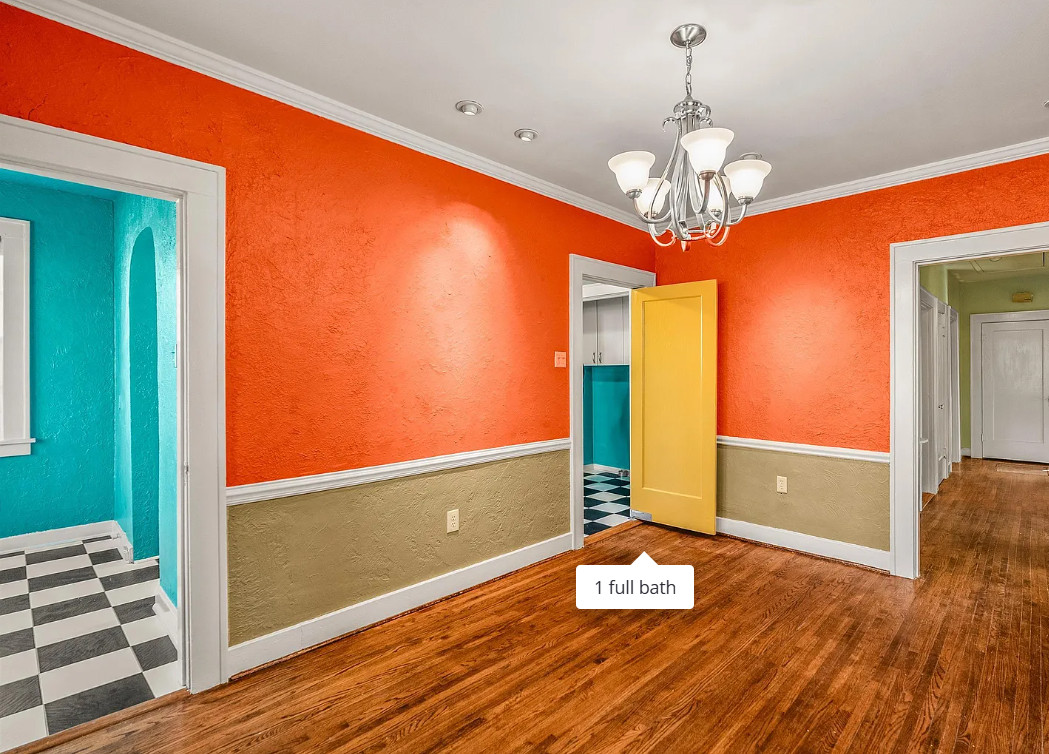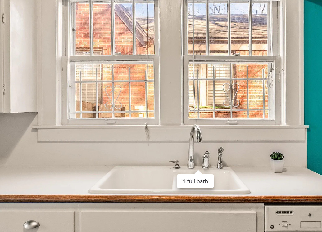 This house has a lot of potential! That pool is unique! The house was built in 1924. It is located in Little Rock, Arkansas. The house features a brick exterior, arched front entryway, wood floors, chair rails, crown moulding, arched french doors and a telephone nook. The backyard is spacious and fenced with an in-ground pool. There is a detached garage on the property. Three bedrooms, one bathroom and 1,498 square feet. $189,900