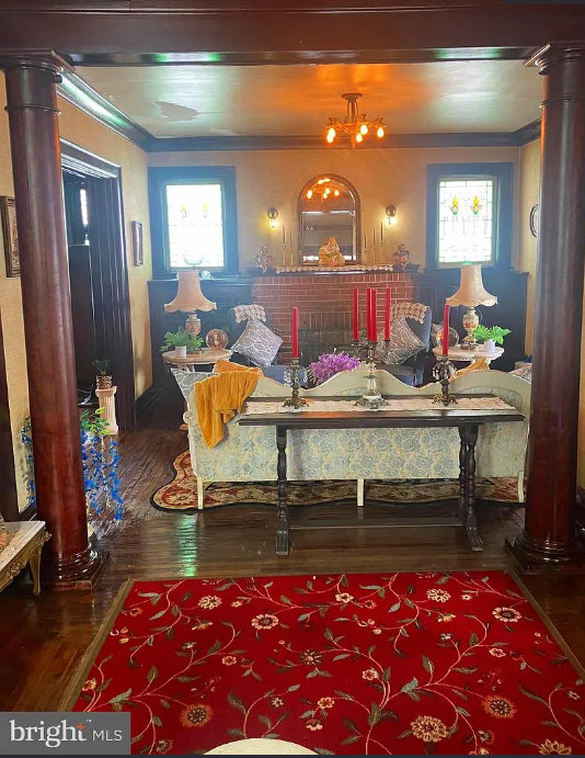 Stunning country brick Colonial farmhouse featuring 9 bedrooms, 3.5 bathrooms, and a detached three-car garage with a newly renovated two-bedroom apartment above. The home showcases beautiful original custom woodworking, soaring ceilings, original 1920s light fixtures, stained-glass windows, pocket doors, Terra Cotta roof, and original hardwood floors—details that reflect its timeless character and restored old-world elegance. With no zoning restrictions, the property offers exceptional investment potential and multiple income-producing opportunities. Situated on a picturesque one-acre lot with mature landscaping and sweeping farm views, this property provides the perfect canvas to create a dream estate in a serene rural setting, while remaining conveniently close to town amenities. Looking for a cash buyer who is willing to take advantage of this rare opportunity to reimagine a truly exceptional country property.