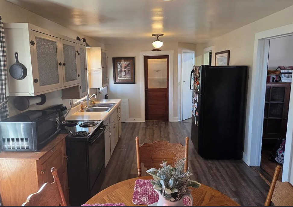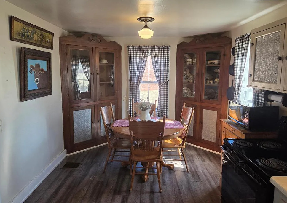 This is a really pretty area! We drive through there on our way from Danville to Saltville. Love the vintage light fixtures. This house was built for the Neff Family. It was built in 1895. It is located on .45 acre in Rural Retreat, Virginia. The house features a covered front porch, balcony, wood floors, nice staircase, stained glass, vintage light fixtures, baseboards, built-in corner cabinets, baseboards, wainscoting and pretty mantels. Three bedrooms, two bathrooms and 2,296 square feet. $279,000