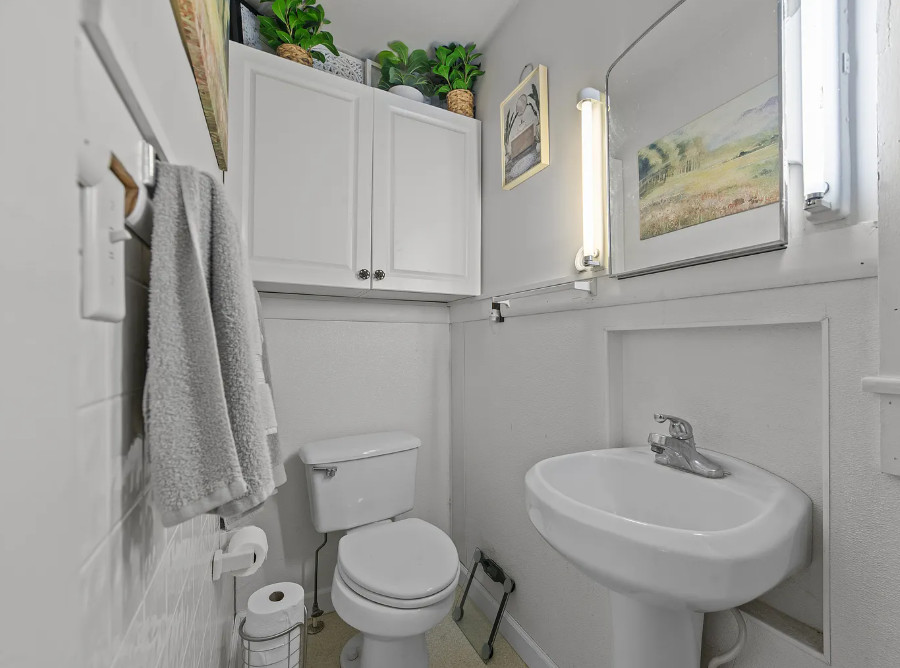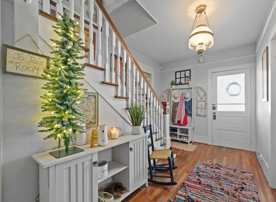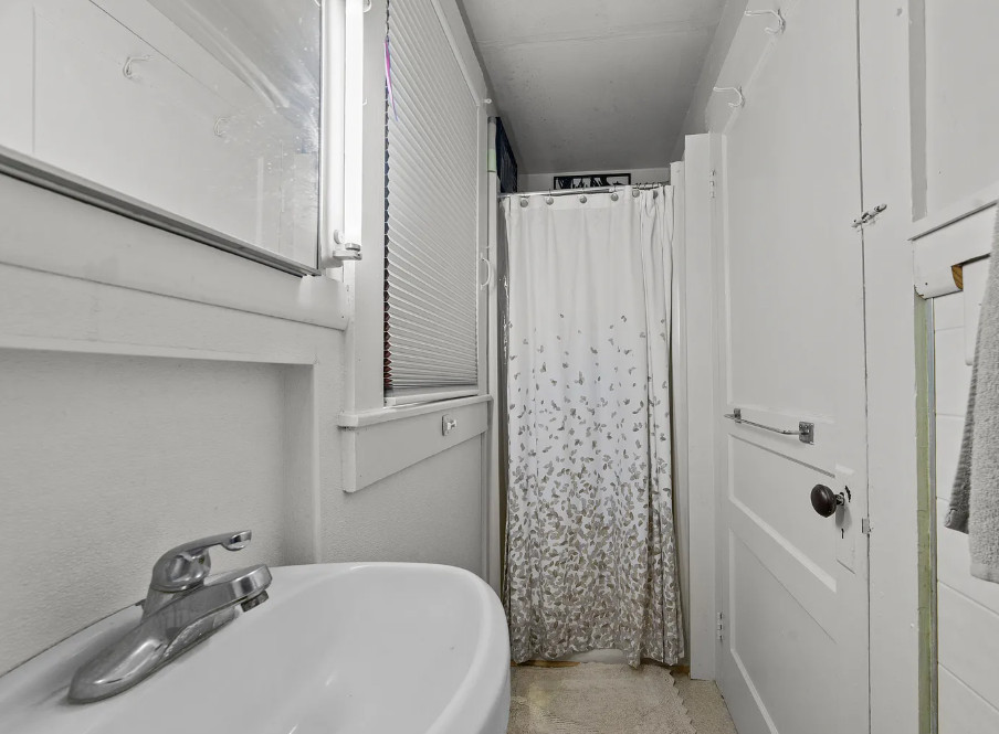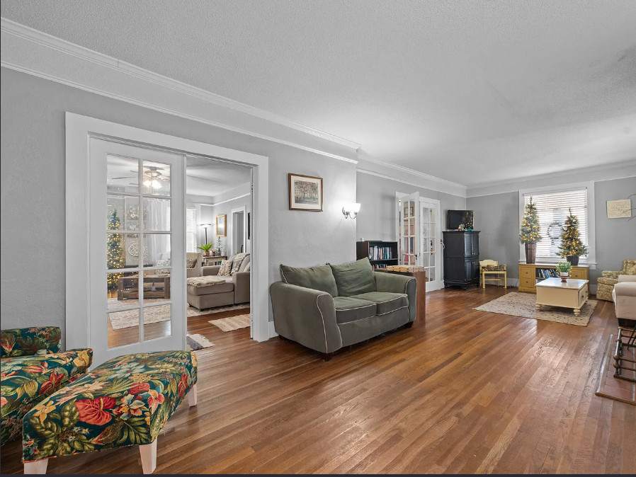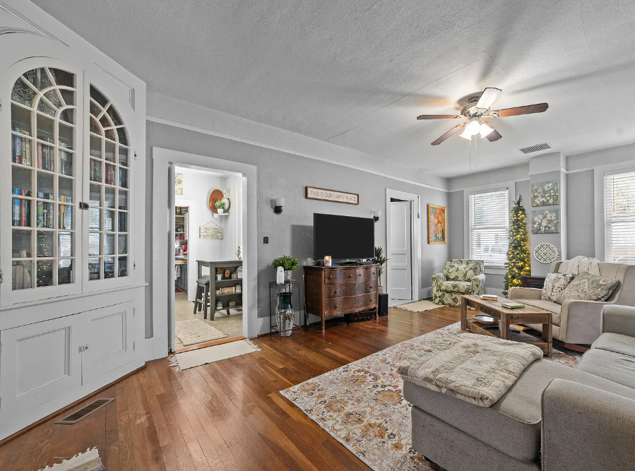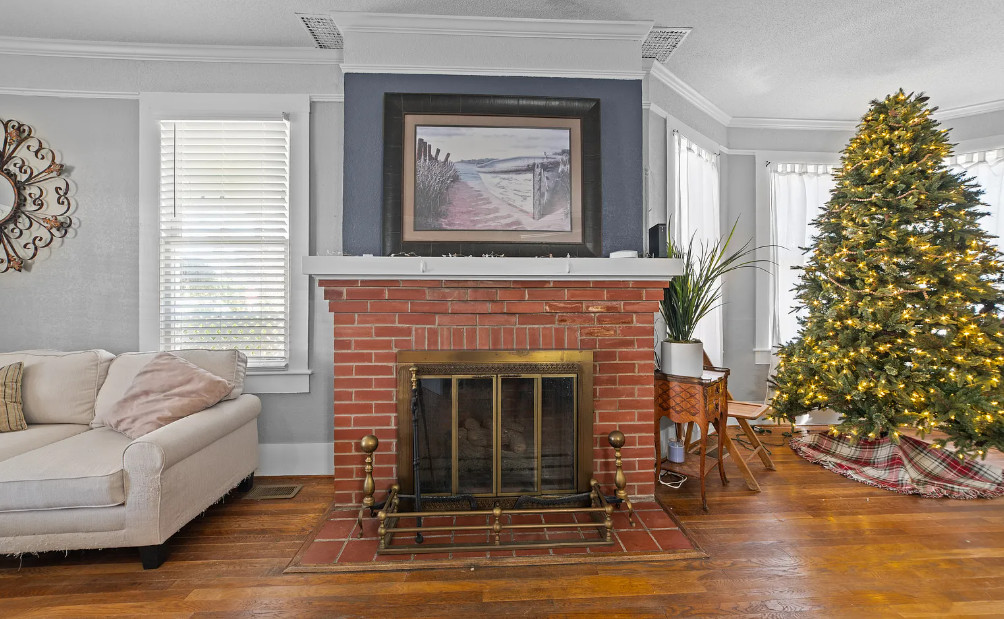 Under an hour to the Outer Banks! That’s a big porch! The house looks like it spans a half a block. The house was built in 1901. It is located on .3 acre in Creswell, North Carolina. The house features a large wrap around front porch, wood floors, nice staircase, french doors, baseboards, picture rails, vintage light fixtures, crown moulding, brick fireplace and a large built-in corner cabinet. There is an attached two car garage. The interior could use some color, but it is like a blank slate. Six bedrooms, two bathrooms and 2,727 square feet. $170,000