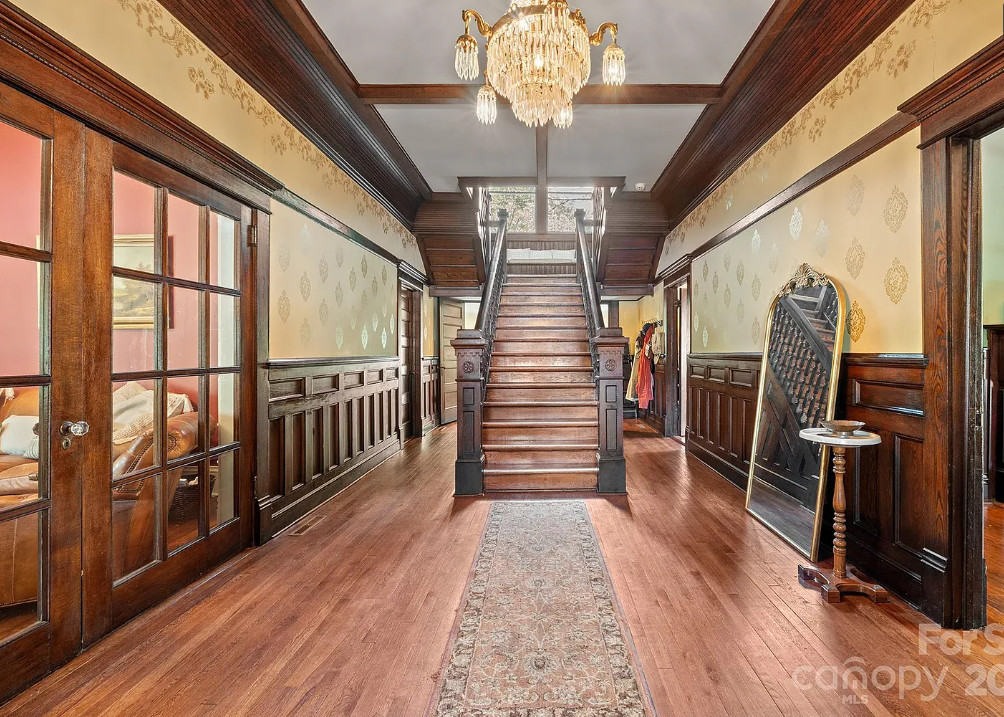 An absolute gem, this 1906 fully restored and historically registered Dutch Colonial home is a must see. Step back in time and relish in this homes pristine craftmanship. Majestically hand-carved stairwell, crown moldings and built-in cabinets, a butlers pantry and intricately hand painted wall design of the grand foyer, three wood burning fireplaces, french doors leading out to the wrap around front porch and clawfoot tub in main floor bath. Beautiful medallion windows in the kitchen stream sunlight into the large kitchen space. A modern touch include storm panels in every window which provide excellent insulation and keep the electric bill down year round. Enjoy your vast backyard with mature trees for shade which includes a rock terrace and water feature perfect for Al fresco dining and entertaining all backing up to city owend wooded property. Take a short walk into the ever-expanding downtown Lenoir for shopping, dining, spas and medical facilities. Only 30 min from Boone.