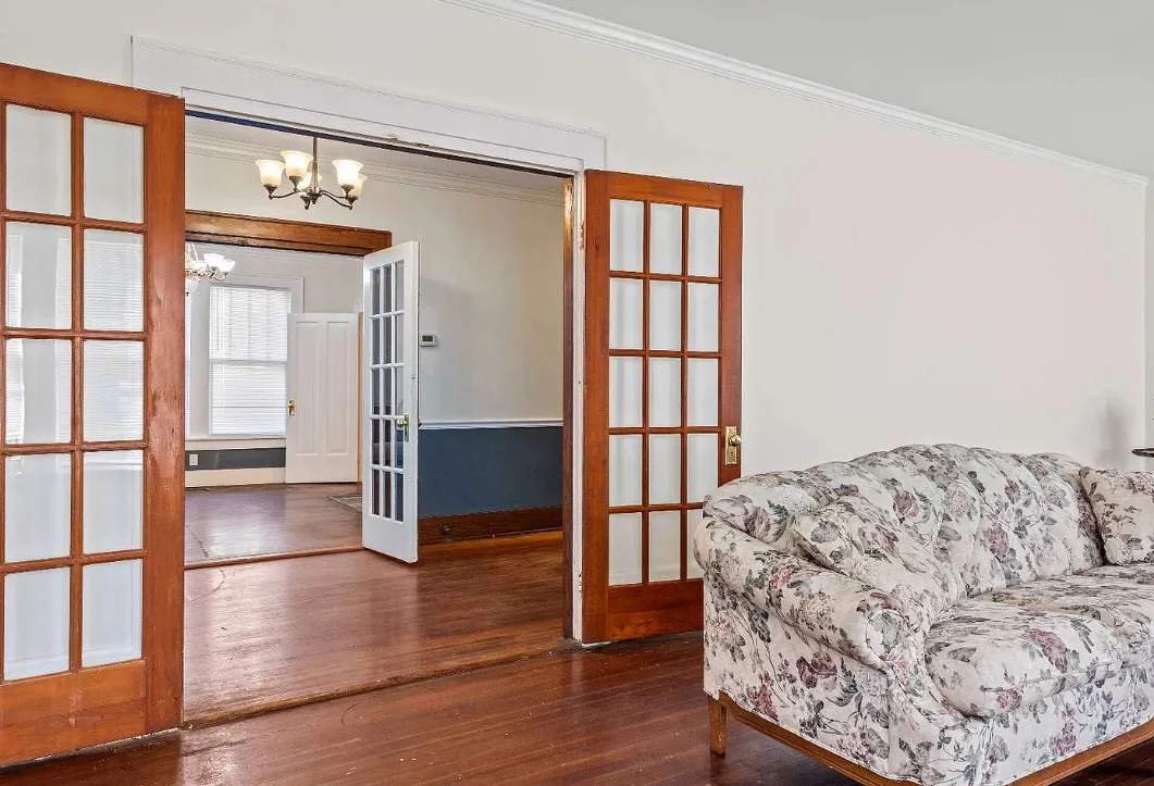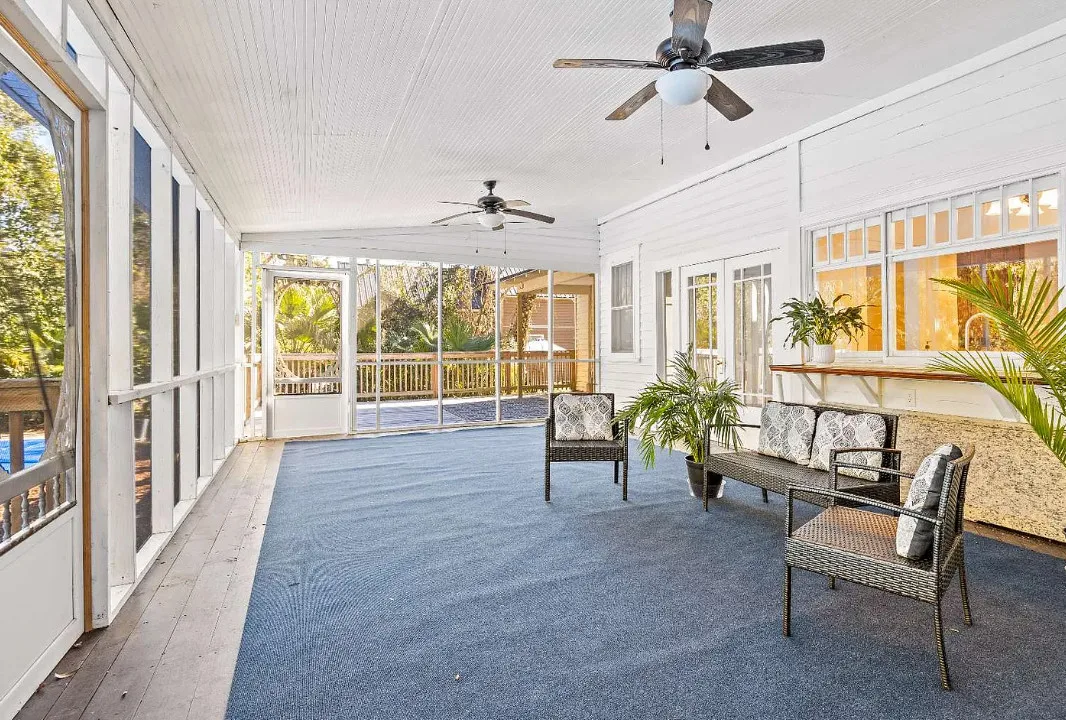 This Florida house has a lot of potential! There are some nice details to work with inside and I love the old trees on the property. The house was built in 1931. It is located on .58 acre in Live Oak, Florida. The house features a large covered front porch, original wood floors, wide baseboards, nice kitchen, chair rails, crown moulding, french doors, brick fireplace, built-in and a large Florida room. There is a spacious back deck and a large yard with I guess, a pool. Four bedrooms, three bathrooms and 3,150 square feet. $279,900