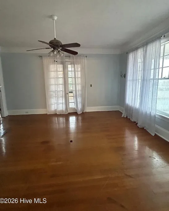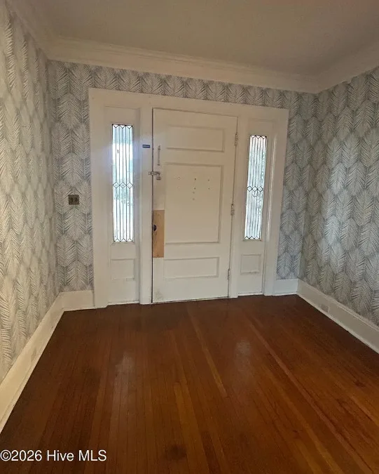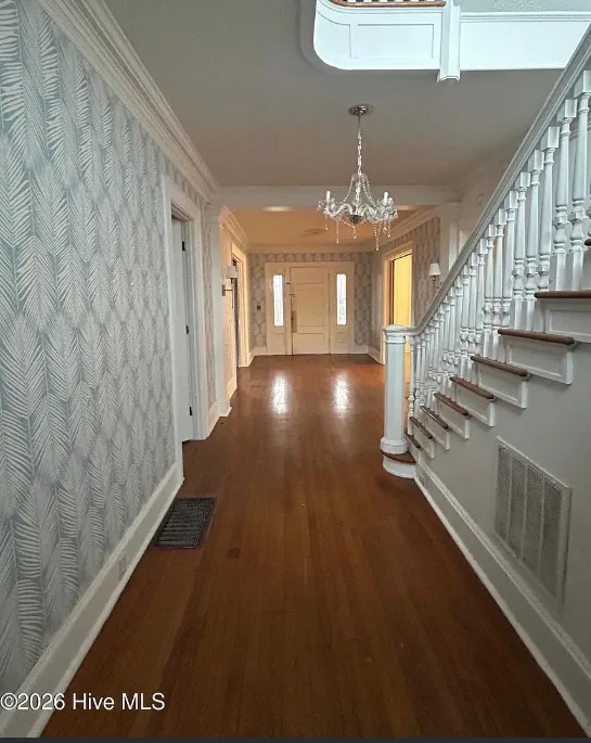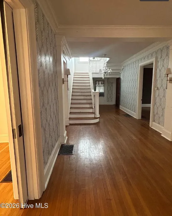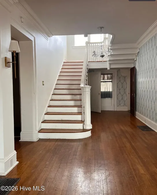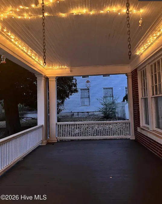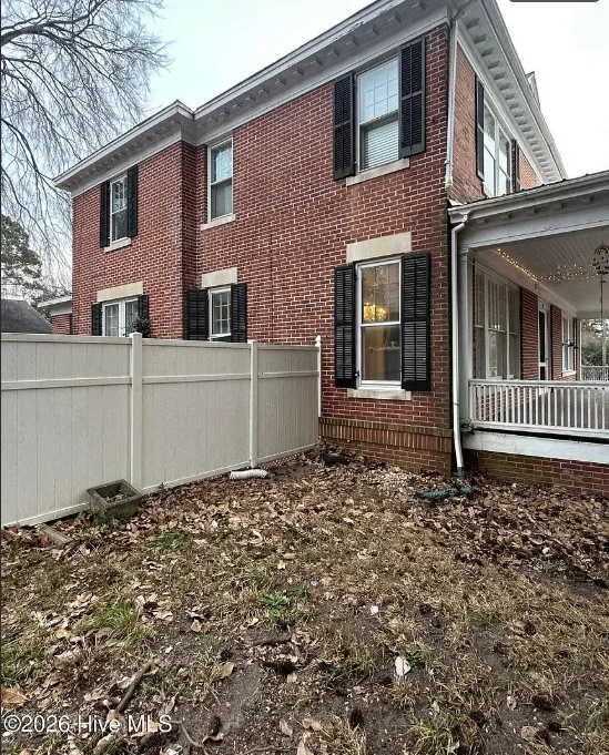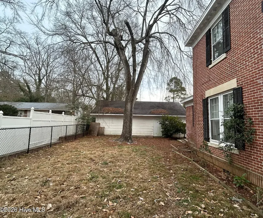 Historic 1912 estate located on nearly an acre in the heart of downtown Rockingham. This stately two-story brick home showcases timeless architectural character with a commanding presence on a spacious corner lot. A wide covered front porch stretches across the front of the home and offers the perfect place to relax and enjoy the charm of this historic neighborhood. Property sold as is where is. Inside, the home features oversized rooms, high ceilings, original built-ins, pocket doors, and beautiful hardwood floors throughout much of the home. The welcoming foyer opens to a grand central hallway leading to formal living and dining spaces filled with natural light. Many rooms retain original cabinetry, shelving, and architectural details that reflect the craftsmanship of the early 1900s. The kitchen offers generous space and includes a double sink, painted cabinetry, and a walk-in pantry. Several rooms throughout the home feature built-ins and storage that add both character and functionality. Upstairs you will find additional bedrooms along with a bright sunroom lined with windows overlooking the backyard. A large walk-in attic provides extensive storage and potential for future use. At the rear of the property is an enclosed porch leading to a detached garage that could serve as a workshop, storage space, or hobby area. The backyard features a large in-ground pool surrounded by expansive concrete decking, creating an impressive outdoor entertaining space once restored. The property also includes a fenced backyard area and spacious yard with mature trees, providing privacy and room for outdoor enjoyment. This home does require repairs and updates and is being sold as-is. It presents a unique opportunity for buyers looking to restore a historic property with significant architectural character. With its generous square footage, classic design, and prime downtown location, this property offers outstanding potential for renovation and long-term value.
