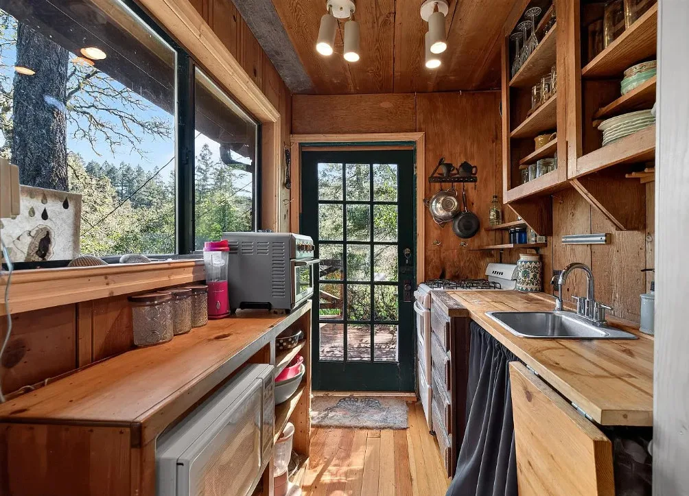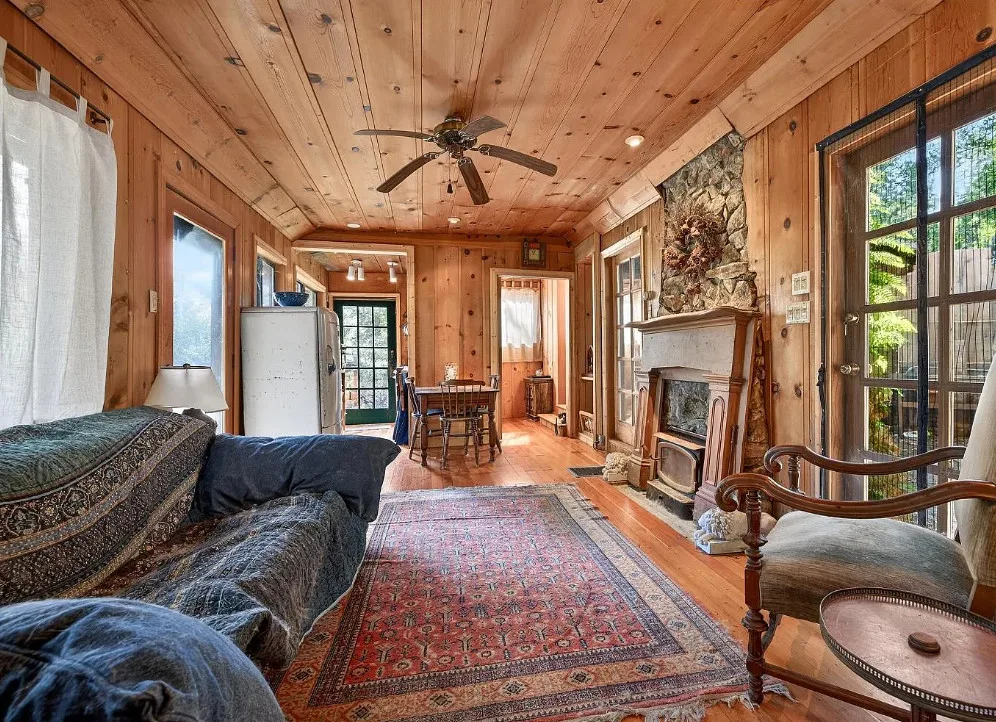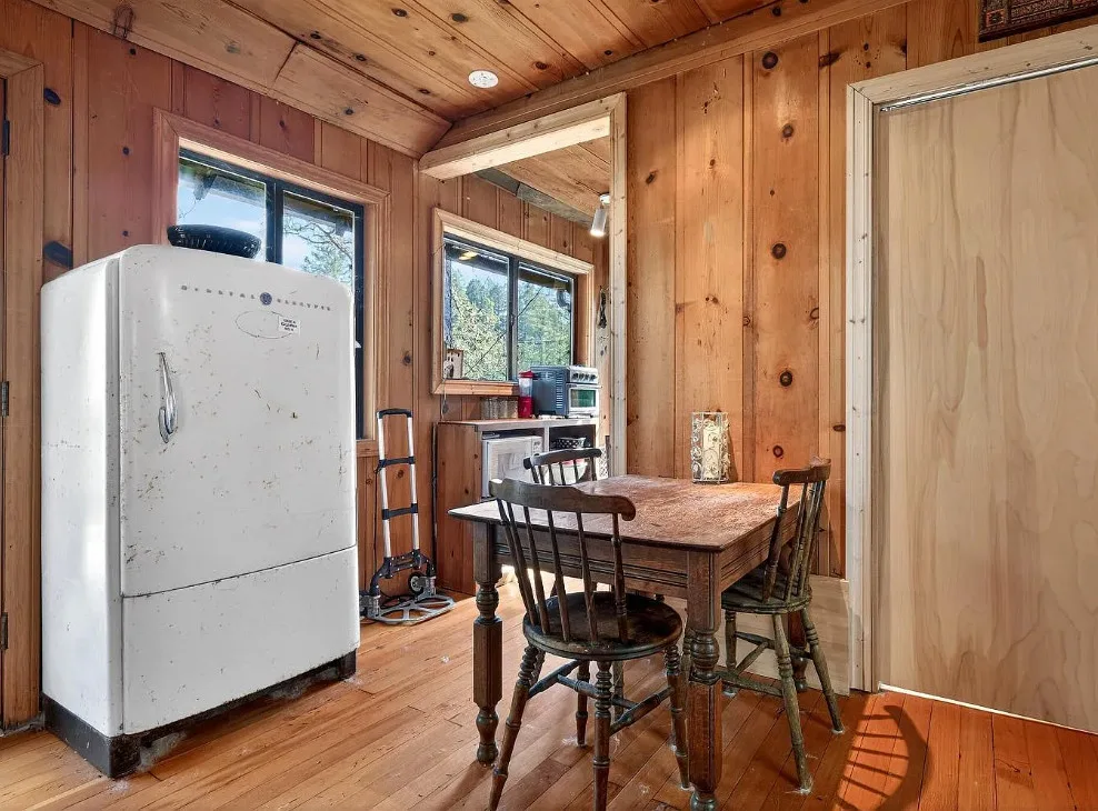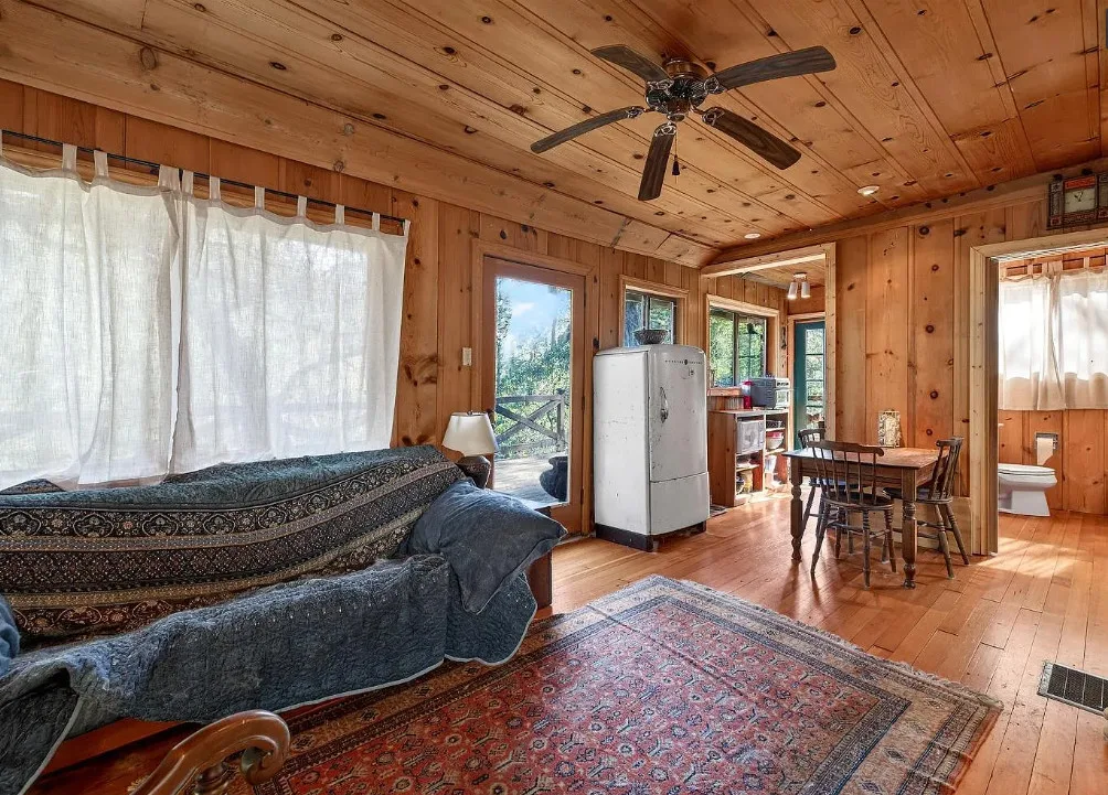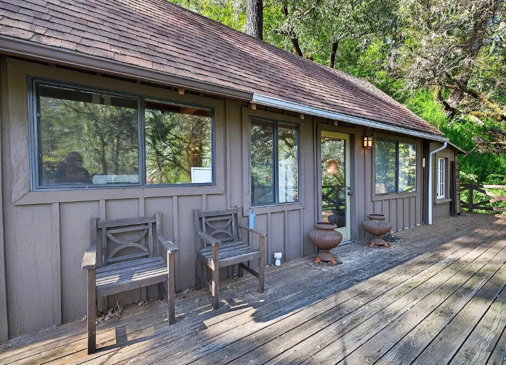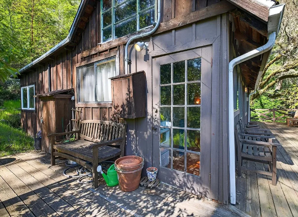 This is a cute cabin! Would make a nice getaway spot! The cabin was built in 1934. It is located on .29 acre in Cazadero, California. The cabin features a large deck, knotty pine walls, knotty pine ceilings, wood floors, stone hearth and a cute bathroom. There are mature trees on the property. Just minutes to town. One bedroom, one bathroom and 536 square feet. $349,000