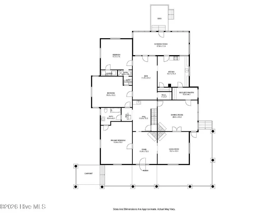 Great porch! Pretty coffered ceiling! On 3/4 acre in North Carolina. $199,000