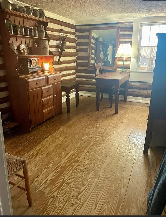 Step back in time without sacrificing modern comfort in this beautifully updated early 1900s log cabin. Situated on a just under one-acre lot that feels much larger, this property offers privacy and room to roam. Fully refreshed with replacement windows, a durable metal roof, and professionally sealed logs in 2023, this home blends historic charm with peace of mind. Inside, you’ll find original wood floors and a cozy wood stove installed in 2025, with plenty of seasoned firewood that will convey. A 12×32 shop building with electric service offers excellent workspace or storage. Enjoy the covered front porch, back deck, and fenced area for pets, all set in secluded rolling foothills—private and peaceful, yet just minutes from town and convenient to Smith Mountain Lake. Motivated sellers.