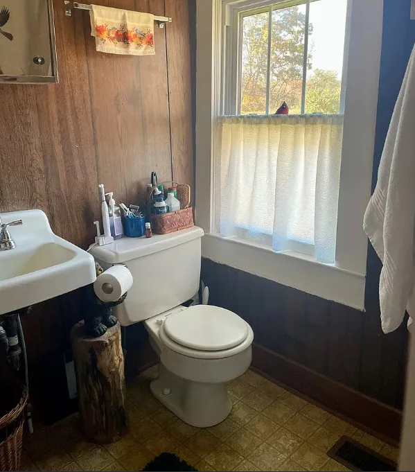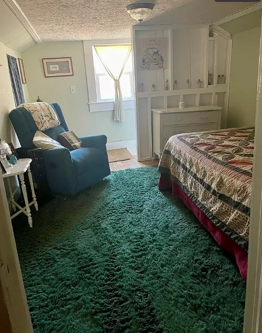 This cabin has a cute interior! It’s located in a pretty area, and not too far from Smith Mountain Lake. The cabin was built in 1942. It is located on .83 acre in Chatham, Virginia. The house features a covered front porch, wood floors, exposed log walls, baseboards and a wood stove. There is a back deck and a detached storage shed on the property. This is a pretty area and Chatham has a nice downtown. Two bedrooms, one bathroom and 1,089 square feet. $179,000
