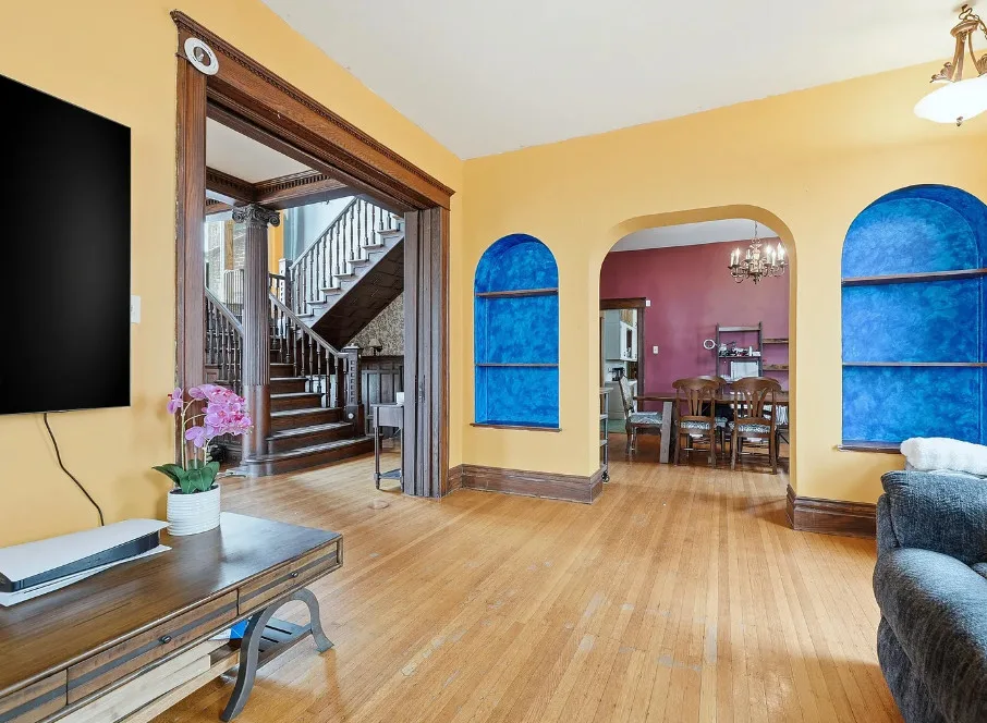 *Open House on Sunday, March 1, 2026 from 1:00pm to 3:00pm* Step into the charm of this striking historic brick property filled with timeless architecture, rich woodwork, and beautiful hardwood floors that truly capture Old World character. The main home unit offers 4 bedrooms and 2.5 baths, along with a welcoming parlor, formal dining room, den, kitchen, laundry area, and additional flexible space currently used as a bedroom, plus generous storage throughout. Intricate trim, deep windows, and detailed craftsmanship carry from room to room, while the kitchen features abundant cabinetry, tile flooring, and an island. The upper level includes a 2-bedroom, 1.5-bath unit, as well as an additional unit across the hall that could potentially be converted back into an efficiency apartment. A versatile bonus room with built-in cabinetry and counter space adds even more functional living area. Mechanical updates include two furnaces installed in 2021, two AC units installed in 2023, and a water heater for the 2-bedroom apartment replaced in 2016. A rare opportunity filled with character, space, and incredible potential—Schedule your showing today!
