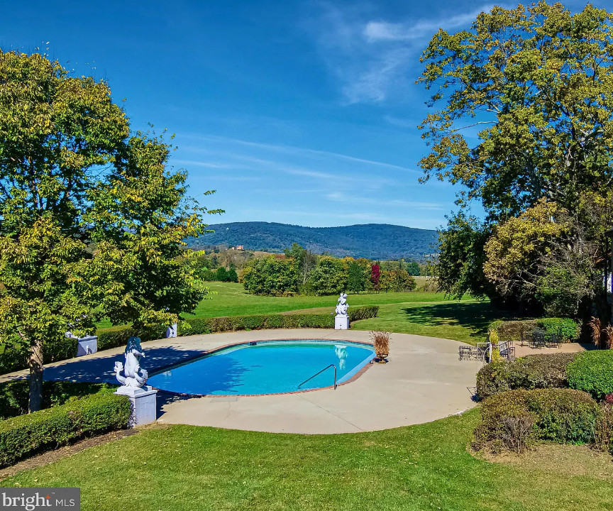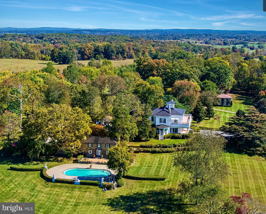 Peace and Plenty at Bollingbrook, circa 1809, presents an outstanding property in the history of Virginia. Originally part of a 9,600-acre land patent from Lord Fairfax in 1731 it later became a wedding present of 790 acres in 1809 whereas the one-story, Federal brick house of four rooms was constructed. Later in 1830, Robert Bolling added 21 rooms creating an ornate and classic Jeffersonian design with 15 ft. ceilings, beautiful fireplace mantels, intricate cornices and columns, a glorious staircase, beautiful hand-blown glass windows, decorative door handles and hinges and gorgeous, white oak floors. All original seventeen (17) structures remain: The Manor House, The Pool House, The Guest Cottage, The Gate House, The Chapel, The Overseer’s House, The 12-stall Barn, The Old Silo barn (oldest in the State of Virginia), The Cannery, The Scale House, The Blacksmith Shop, A Wood Shed, The Schoolhouse, A Smokehouse, A Summer Kitchen, A Barn Apartment and The Hilleary House. The main house offers four generous entertaining rooms upon entry; a Music room, Living room, Meeting room and a Library. The expansive Dining room can accommodate two dozen friends and family. A Primary Suite with adjoining sitting room, opens to the deck sunroom and a stroll on the wrap around balcony. Of course, a luxurious bath leading to an expansive closet of 27 ft. x 18ft. outfits the suite. In addition, there are two, luxurious bedrooms with fireplaces and private baths, a back staircase, full basement, a three-car garage, and a lovely mudroom entry to the Kitchen with enclosed porch. The Pool House flanks a saltwater pool with a wide lounging ledge and overlooks the Blue Ridge displaying spectacular sunset views! Among the pristinely manicured grounds is the notable 250-year-old Cedar of Lebanon tree, largest in Virginia. Preserved in Easement with the Land Trust of Virginia and in the Piedmont Hunt territory, this 365-acre retreat offers unparalleled tranquility and privacy for All to enjoy!