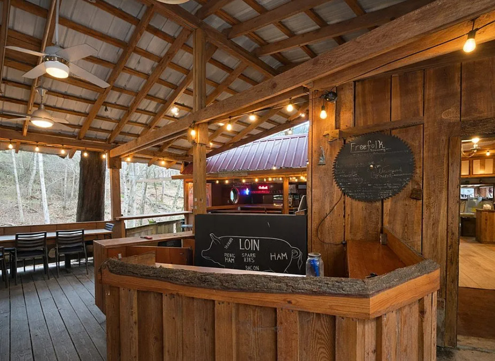 This would be so fun to own! There is an old store, a bar, cafe, music venue and a cabin. The store was built in 1928. It is located on 6.25 acres in Amsted, West Virginia. The property is situated creek side in the New River Gorge Valley area. There are lots of possibilities with this property! There is even a smaller cabin that could be used as an office. Four bedrooms, three bathrooms and 3,500 square feet. $399,000