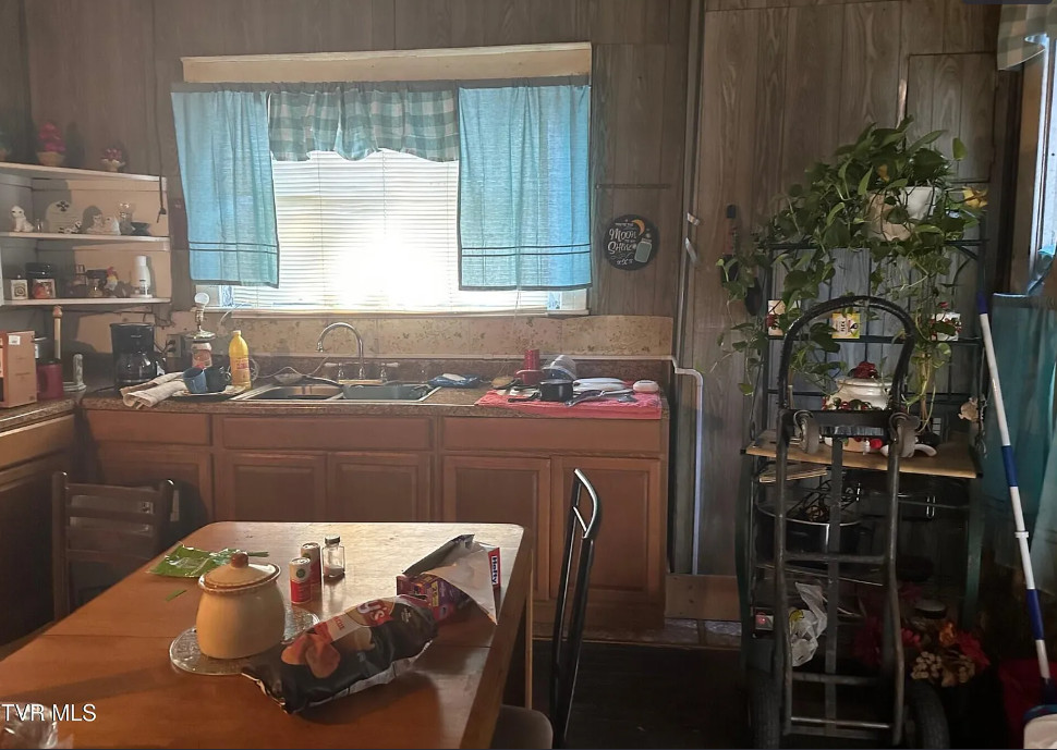 Fixer upper alert! That’s a nice porch! This house was originally built for the upper management of the local coal mine. The house was built in 1920. It is located on .57 acre in Appalachia, Virginia. The house features a large wrap around porch, wood floors, baseboards and paneled wainscoting. Would be nice to get in there, clean it out, open curtains and see what is there. Hard to tell with these pictures. I would offer $30-35k and see what happens. Five bedrooms, three bathrooms and 3,156 square feet. $52,000