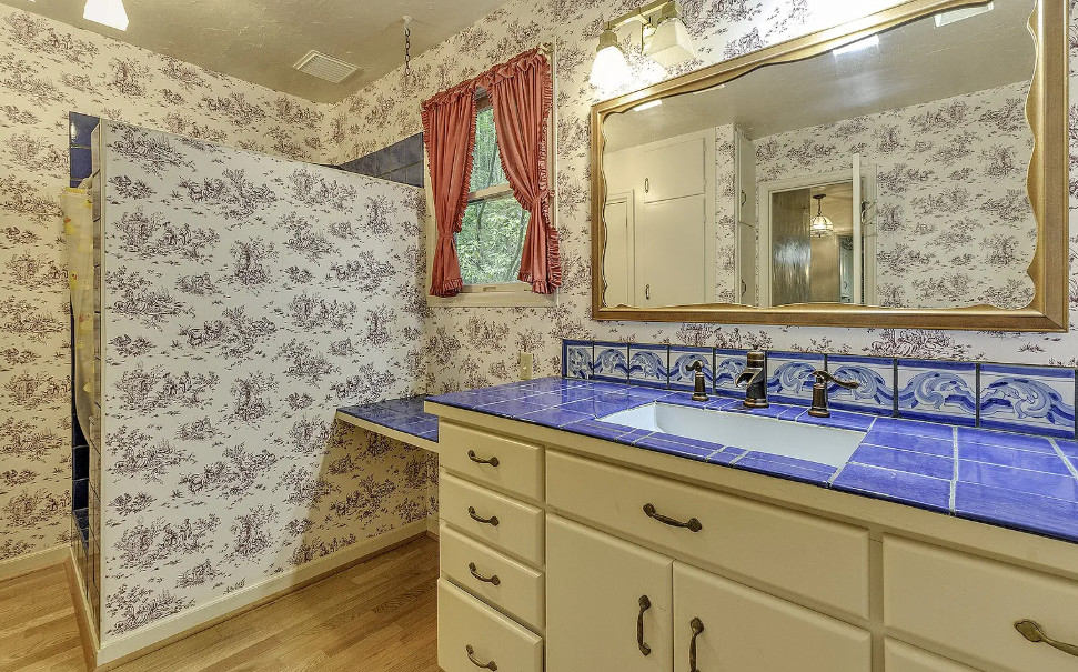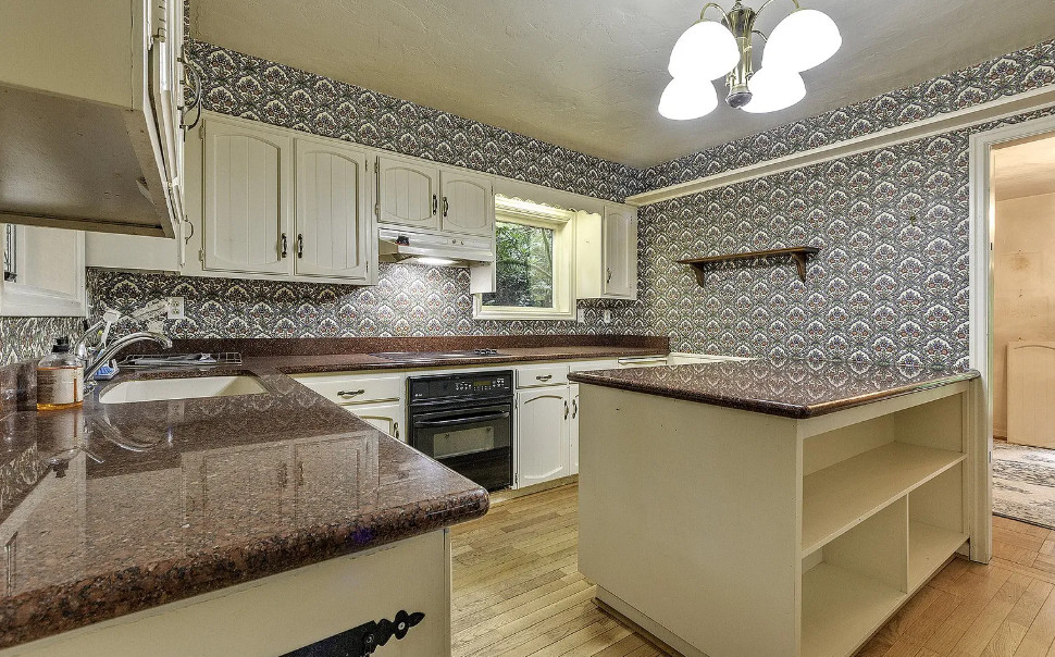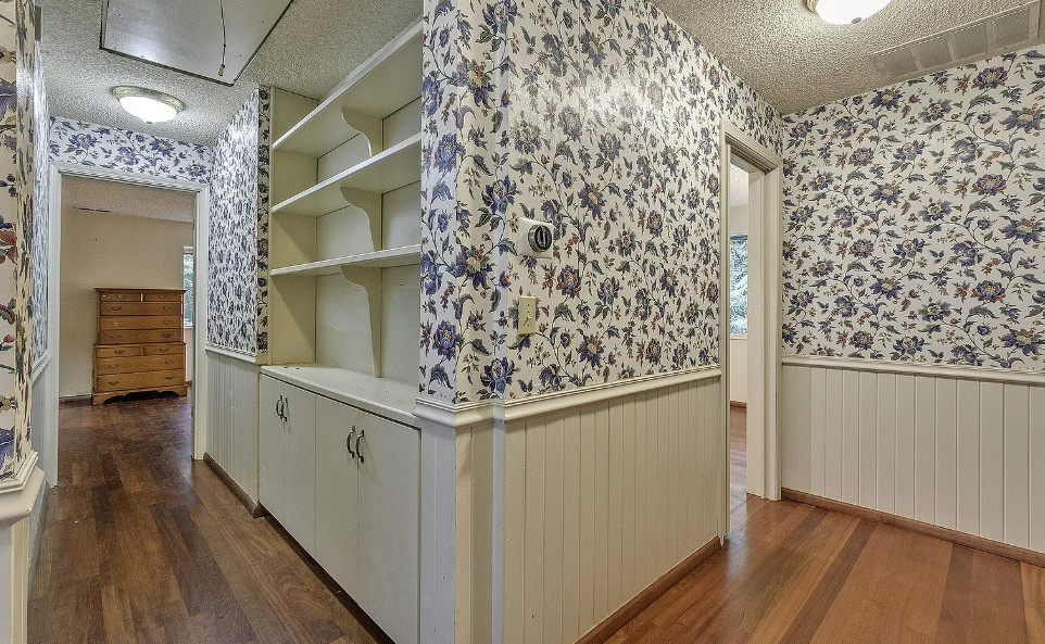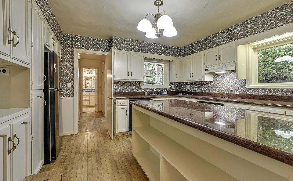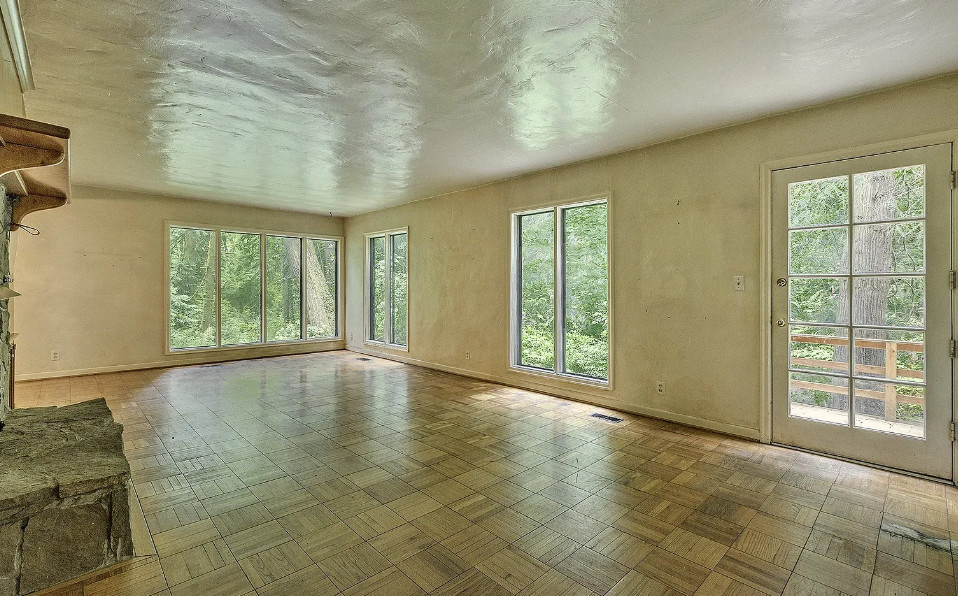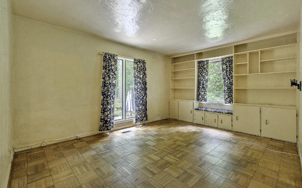 Take a look at that setting! Feel like you might see Bigfoot walking around in there. There is a guesthouse on the property. The house was built in 1940. It is located on 9.39 acres in Portland, Oregon. The house features a great entryway with soaring ceilings and a wall of windows, parquet flooring, built-in bookshelves, stone fireplace and a spacious kitchen. There is a large basement. The guesthouse has two bedrooms and one bathroom. Four bedrooms, two bathrooms and 2,958 square feet. $899,000