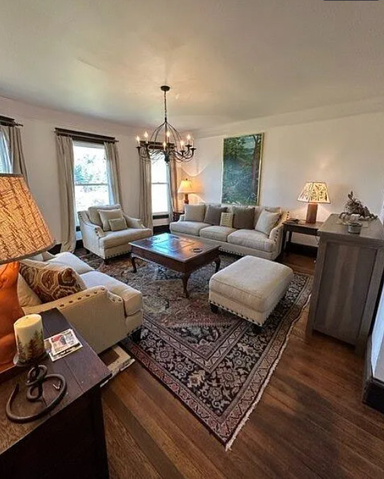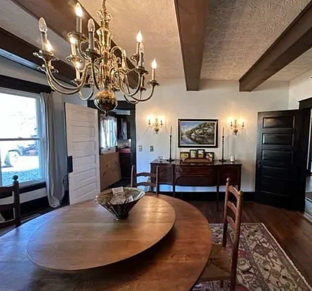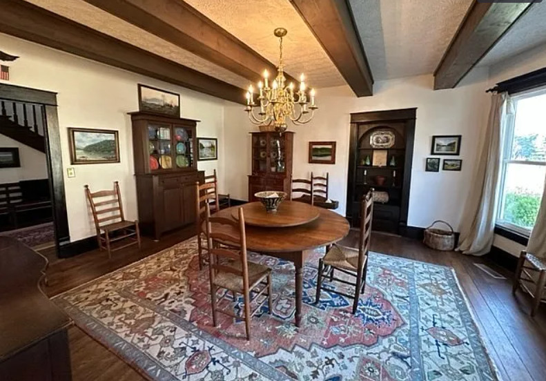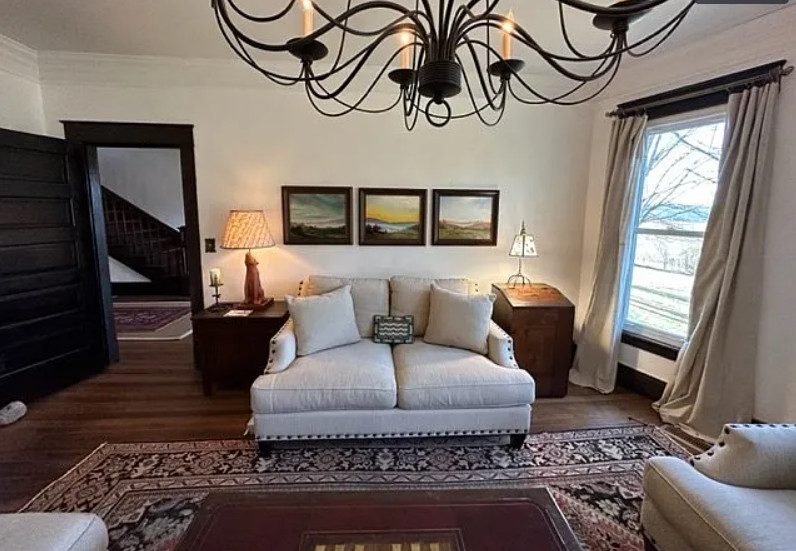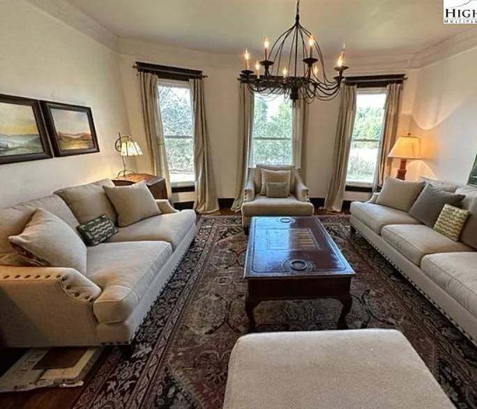 Beautiful house! Beautiful setting! Beautiful views! Really pretty area in Southwestern Virginia. The house was built in 1905. It is located on 15.74 acres in Independence, Virginia. The house features a large wrap around front porch, some original wood floors, crown moulding, pretty chandeliers, baseboards, picture rails, exposed beams, built-in window seating, pretty staircase, large upper hall and vintage light fixtures. There are a couple of barns and a detached storage shed/workshop. Not far from Grayson Highlands State Park. Four bedrooms, three bathrooms and 4,056 square feet. $599,900