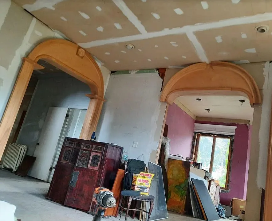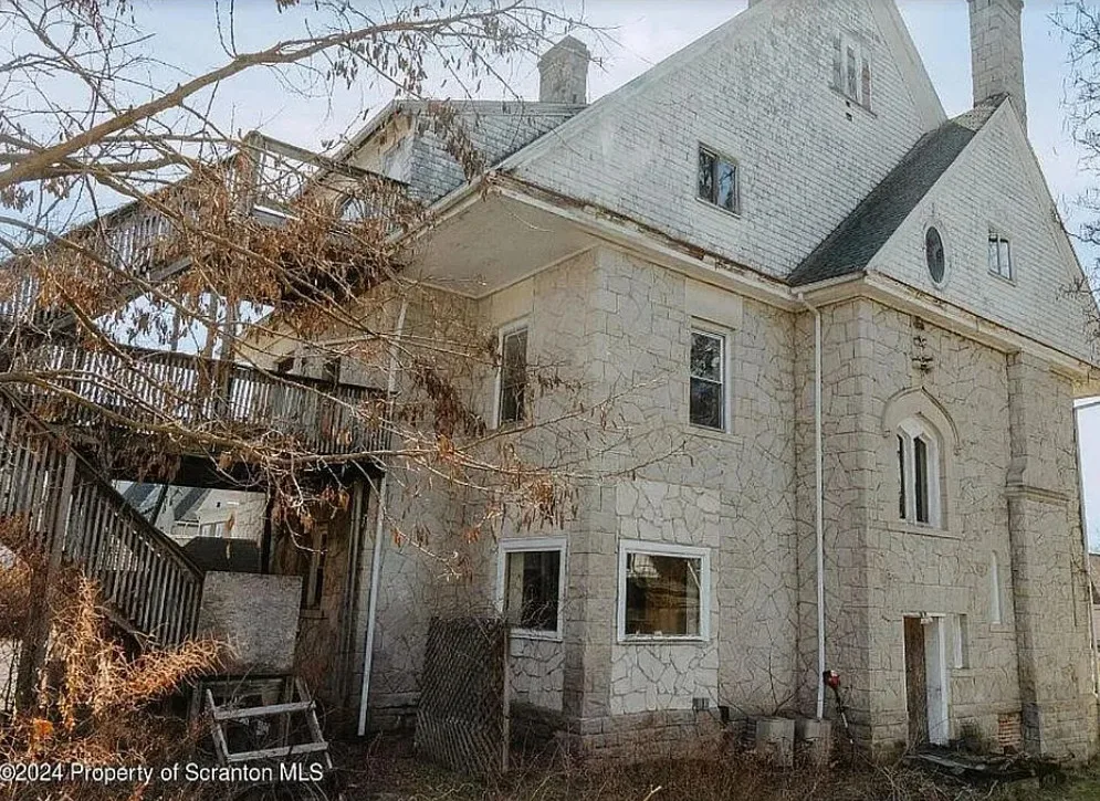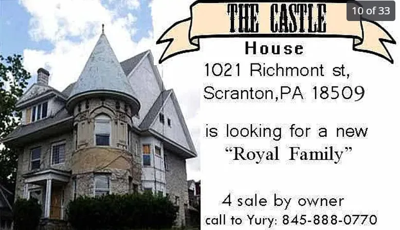 The house at 1021 Richmont St, Scranton, PA 18509 is known as “The Castle”. It was built in 1900, by a famous architect for his private residence. This architect also built the Town Hall and the Town Court in Scranton. He built many other uniquely beautiful buildings in Scranton as well. “The Castle” has four floors including basement. The building is located on a one-way street with three property lots and a parking lot for 10 cars. The house was purchased in 2002 and was converted from a three-family to a single-family home, according to the architect's original drawings without changing the engineering design. The brick wall from the foundation to the roof is more than a foot thick; it is lined with large stones specifically cut for the walls of the building. The exact same stones were used in the construction of the Town Hall and the Town Court in Scranton. The renovation projects of this building included: new electrical commercial wiring, new plumbing, new sheetrock, staircase, new water system, new roof which was installed with new shingles, two air conditioning units, and a new kitchen. More than $600,000 were spent on this entire renovation. The Professional License Engineering Report, which was done recently, can confirm this information. There is permission from the City Planning Board to change this building from one family to three family rentals. The title is clean, and a mortgage has been paid off in full a long time ago. The building needs a final finish on the inside and the outside.