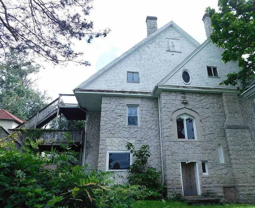 This house is known as “The Castle”. It was designed by architect, Edwin L. Walter. Interesting to see his original sketches of the house. The Castle was built in 1900. It is located on three acres in Scranton, Pennsylvania. The house has some nice features and a lot of work has already been completed. There is new electrical, new plumbing, new roof and two new HVAC units. Eight bedrooms, three bathrooms and 4,561 square feet. $399,999