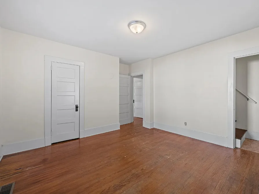 Great wrought iron fence! Pretty mantel! Circa 1940 in Oregon