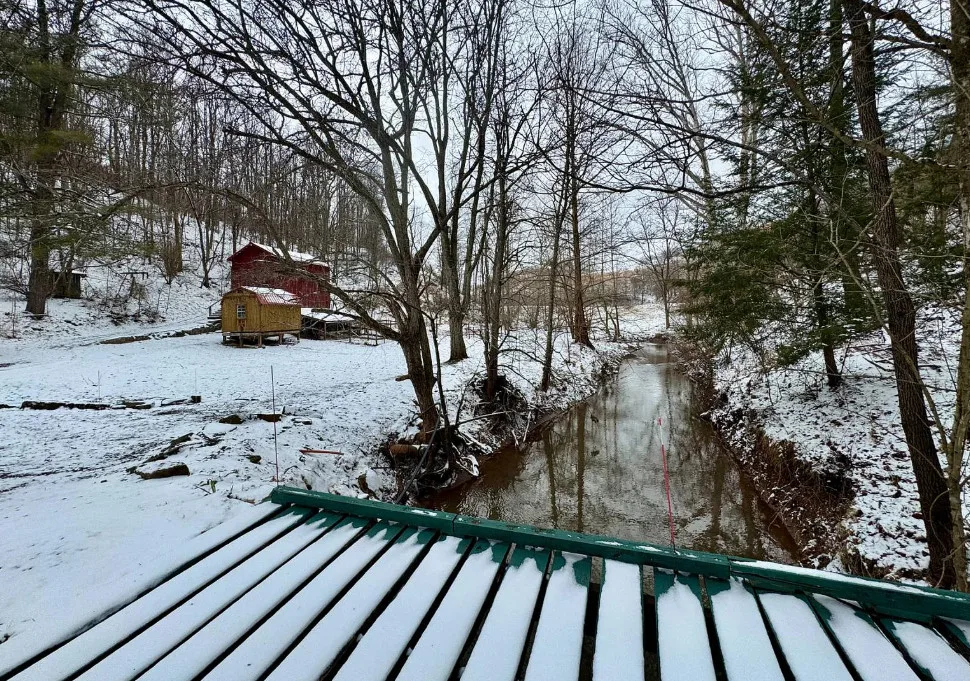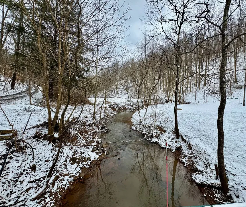 Pretty setting! On 66 acres in West Virginia. Has a creek.