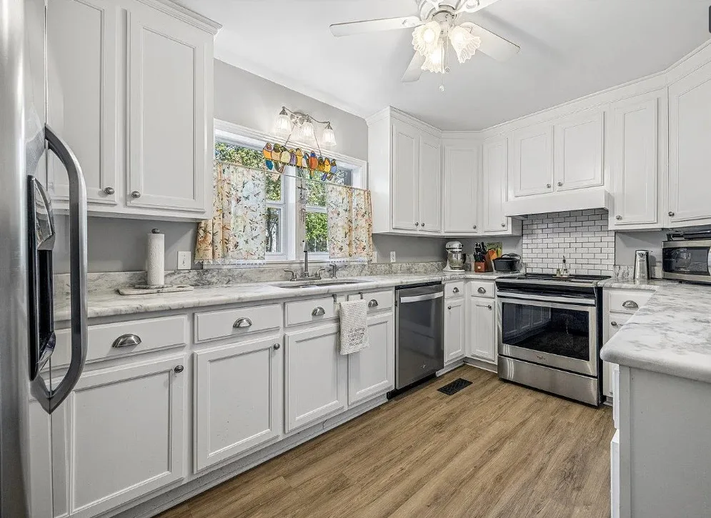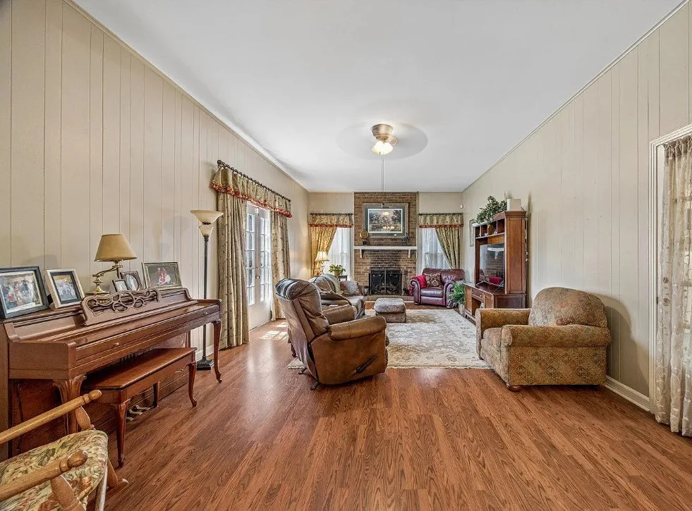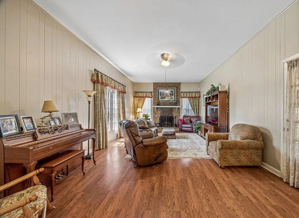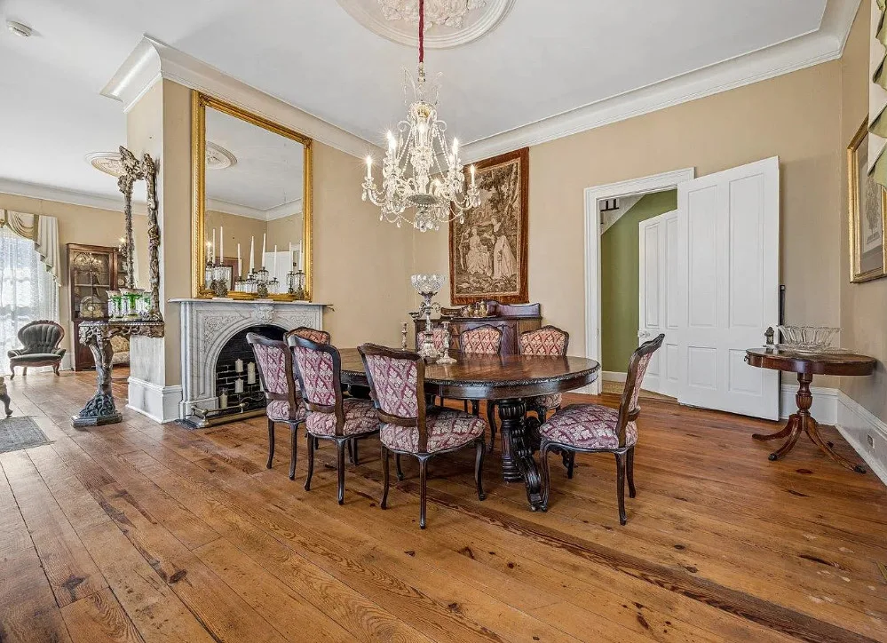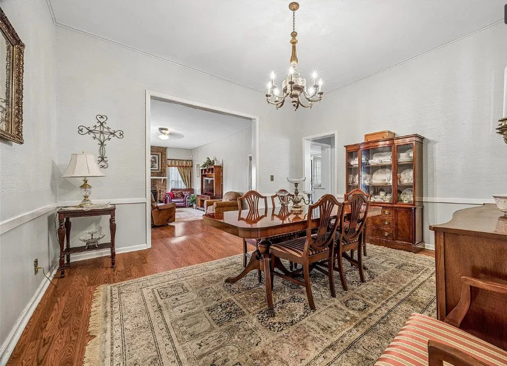 This is a pretty house! There are nice details inside! The home is known as “White Pillars”. It was built in 1838. White Pillars is located on .34 acre in Holly Springs, Mississippi. The house features double front porches, wood floors, ceiling medallions, wide baseboards, crown moulding, crystal chandelier, chair rails, french doors, updated kitchen and updated bathrooms. There is a screened in back porch and a large back patio. Four bedrooms, three bathrooms and 4,000 square feet. $375,000